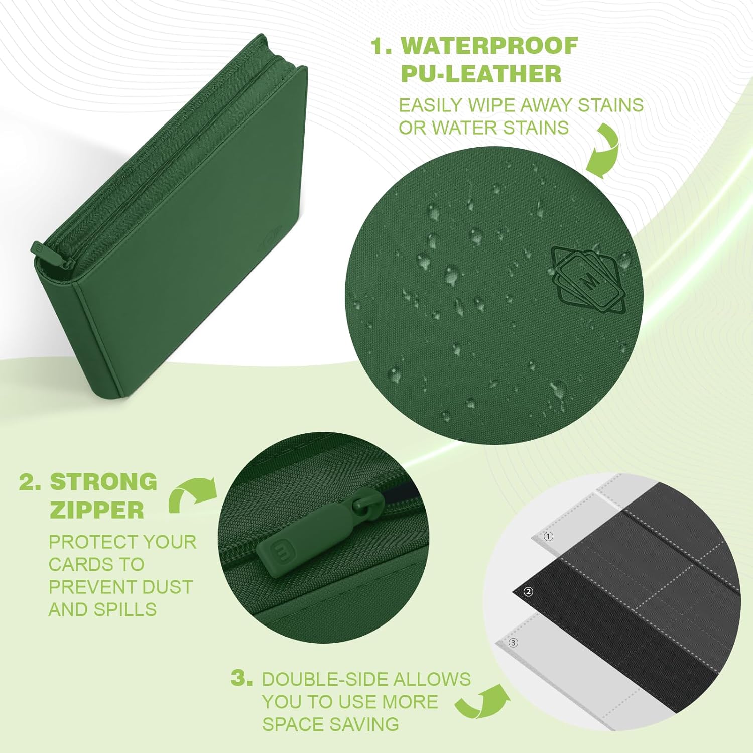 - 【PREMIUM QUALITY MATERIAL】 Our card binder is made of textured PU leather finish which is durable and comfortable. It more resistant to water and dust, Designed to keep card securely in place. Quality zipper keep cards protected and intact when not in use.The perfect way to safely browse your cards and never have to worry about your valuable cards being damaged. Offer different stylish colors to match your tastes.