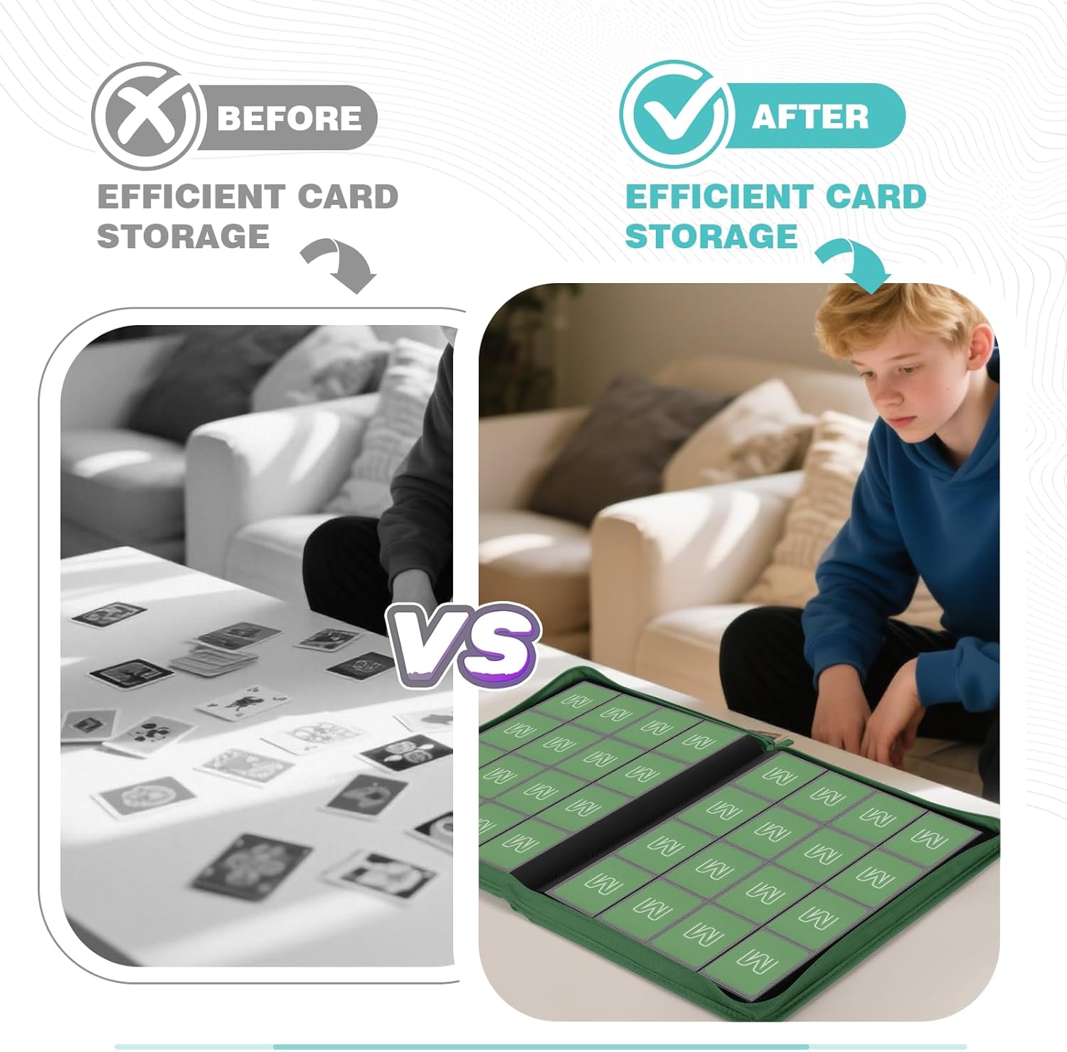 - 【GREAT FOR VARIOUS CARDS】The sleeve size of the trading card binder is suitable for a wide range of cards,such as Football Cards,Hockey Cards,Baseball cards,MTG Card Game,Yu-Gi-Oh Card Game,Fuji mini Polaroid photos,Business Cards,Credit Cards,Coupons,Mini Photos,etc.Meeting your needs to collect different cards.