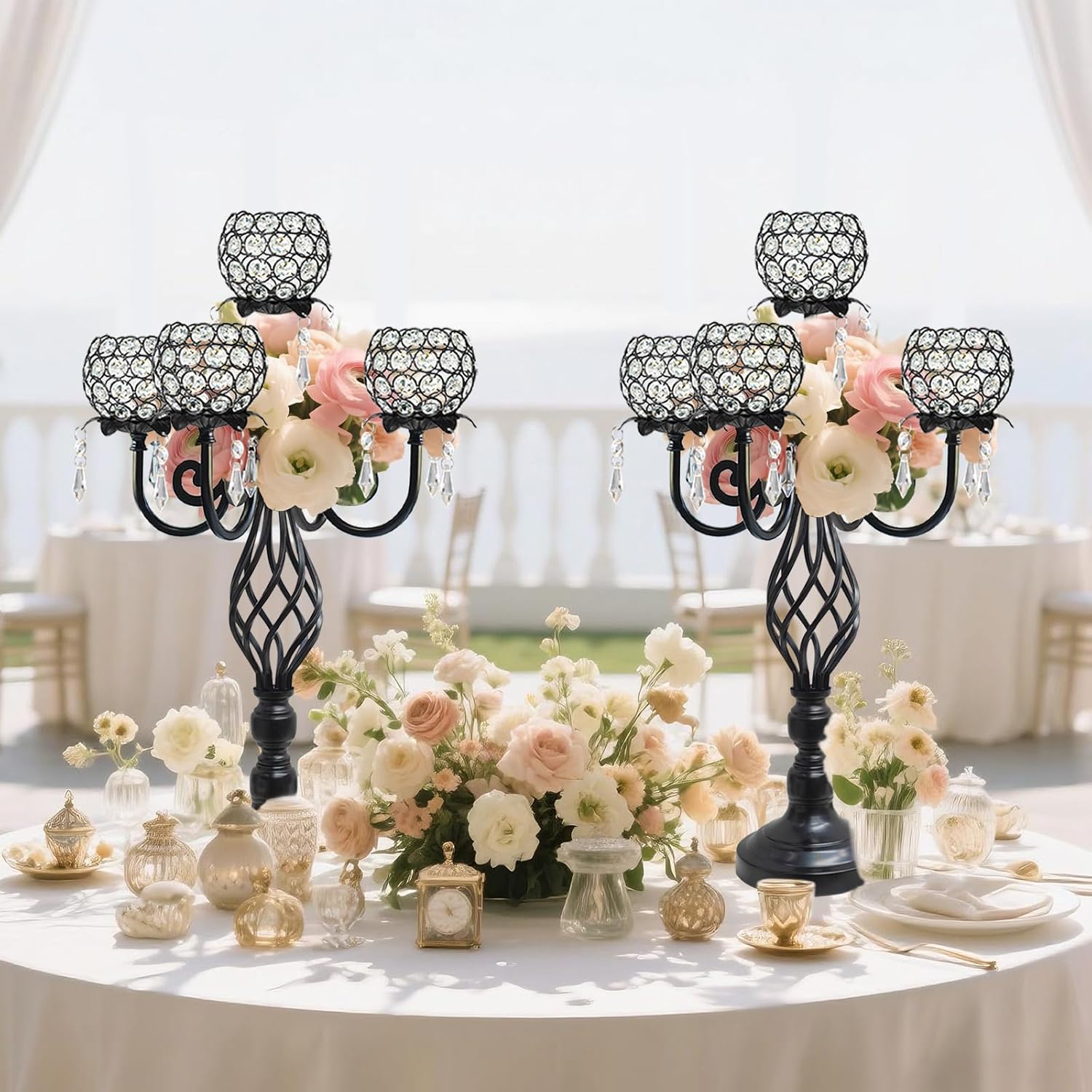 5-Arm Crystal Candelabra Centerpiece 23.2" Tall - Elegant Candle Holder Stand with Crystal Bowl, Chic Table Decor for Weddings, Parties, Anniversary & Home Decoration (4, Black)