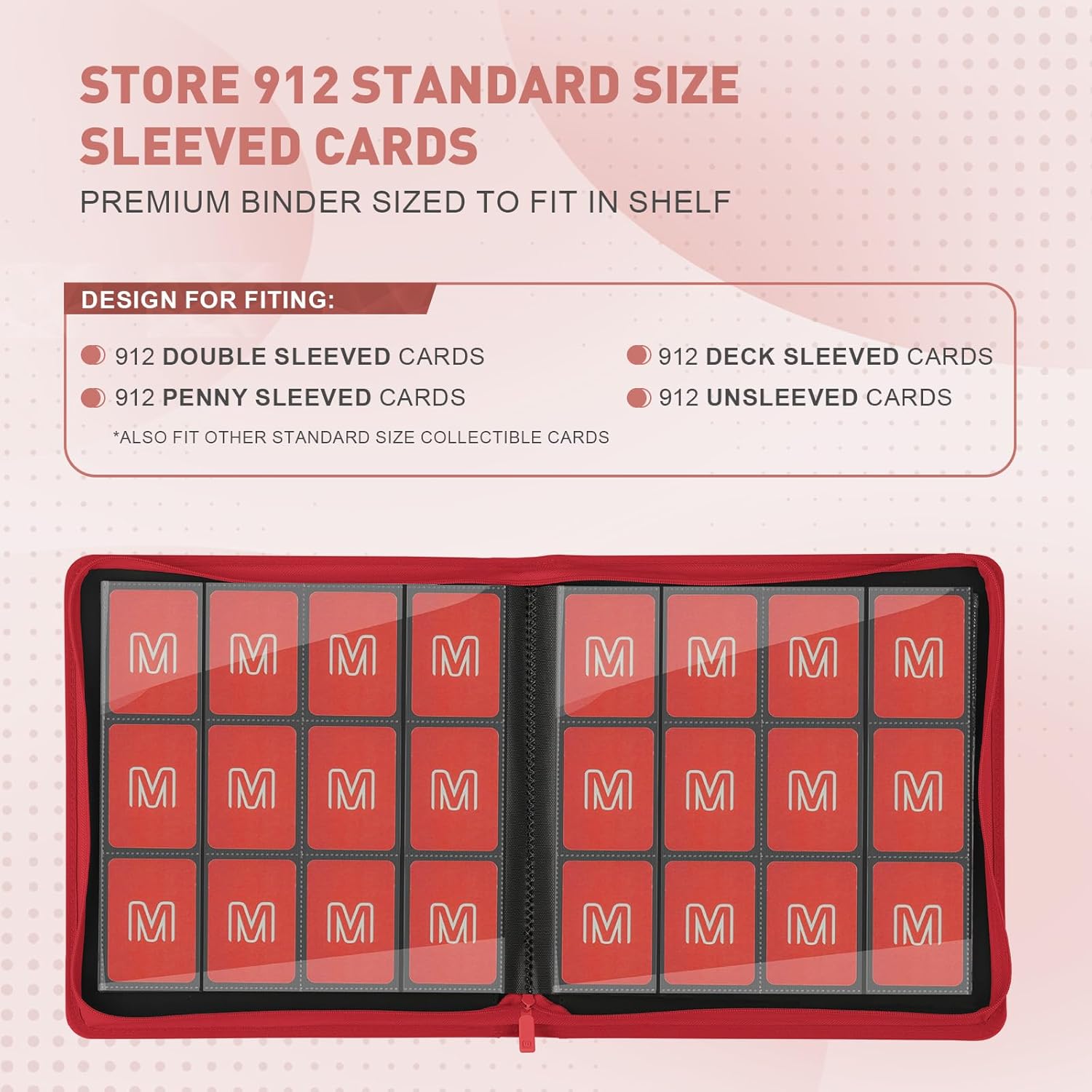 Premium Card Binder 12 Pocket for 720 Pockets Trading Card Binder, PU Zipper Card Collection Album, Sturdy Side-Loading Card Book Holder for MTG, TCG, Game Cards, Sports Cards