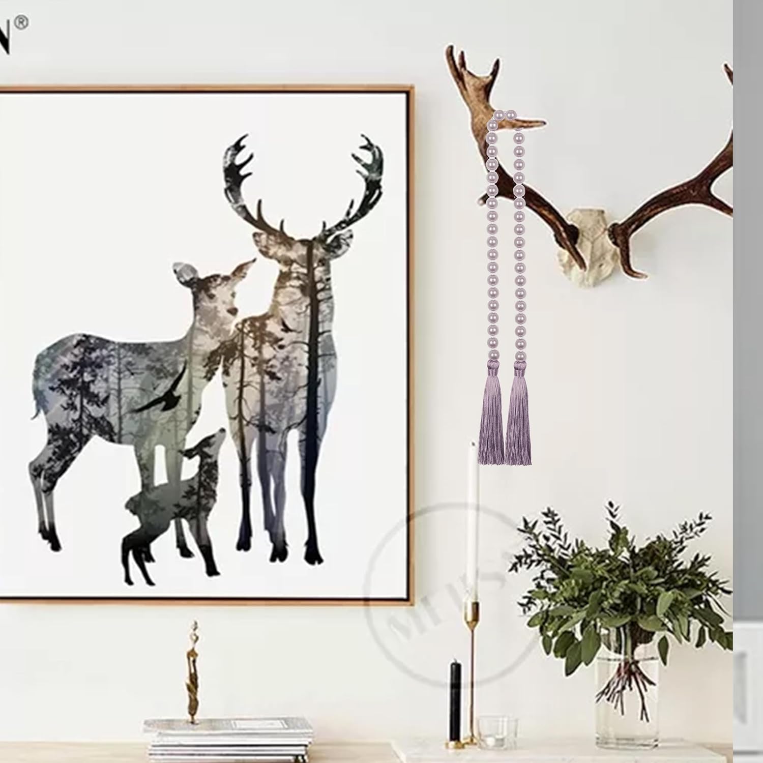 Fenghuangwu 34 Inch Pearl Glass Bead Garland with Tassels - Elegant Boho Table Decor, Fringe Wall Hanging for Wedding, Party, Farmhouse Rustic Prayer Bead Home Decoration(2 Pack,Purple)