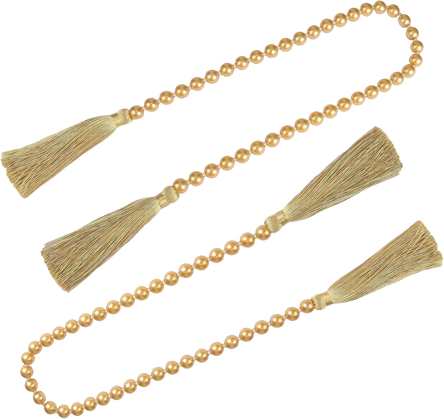 Fenghuangwu 34 Inch Pearl Glass Bead Garland with Tassels - Elegant Boho Table Decor, Fringe Wall Hanging for Wedding, Party, Farmhouse Rustic Prayer Bead Home Decoration(2 Pack,Gold)