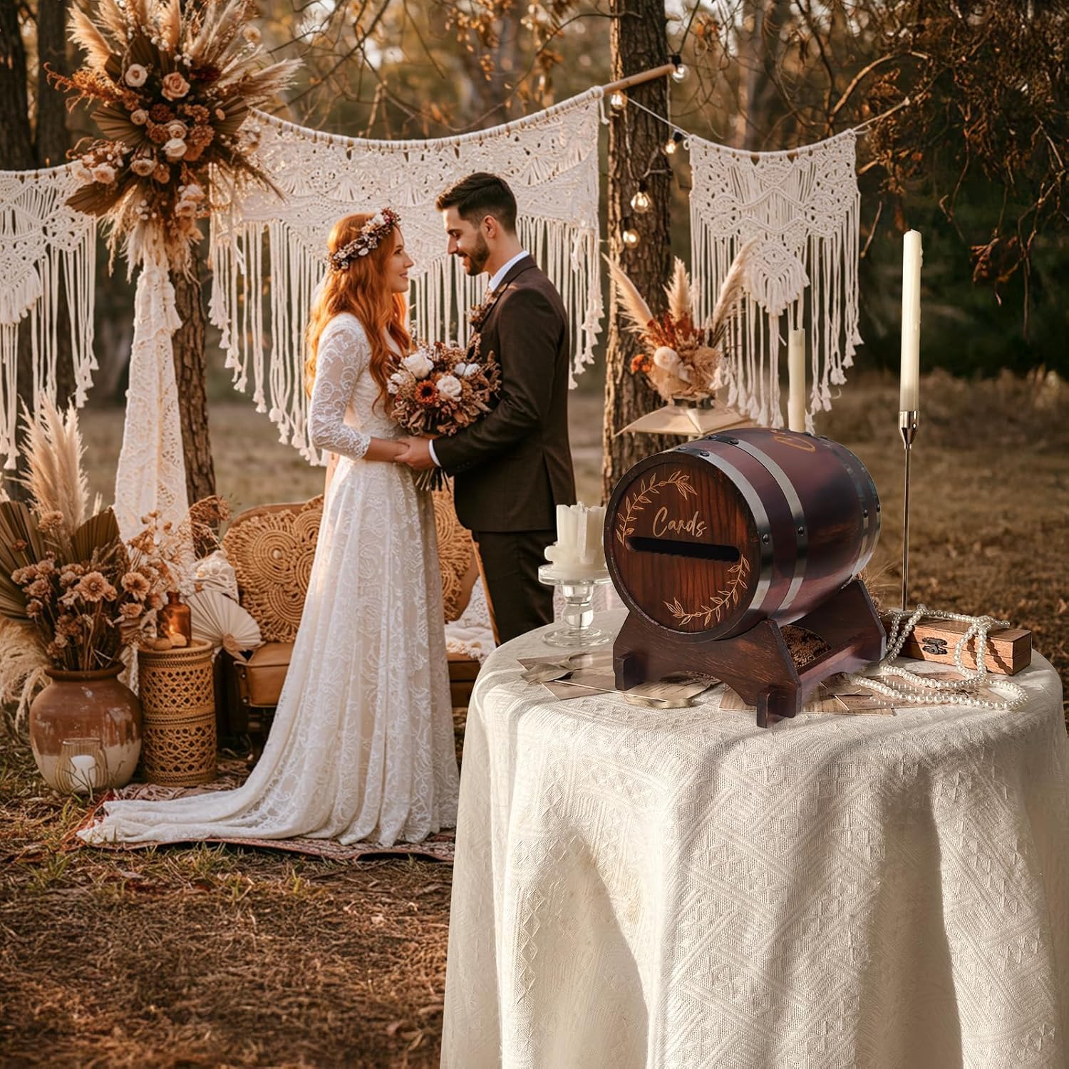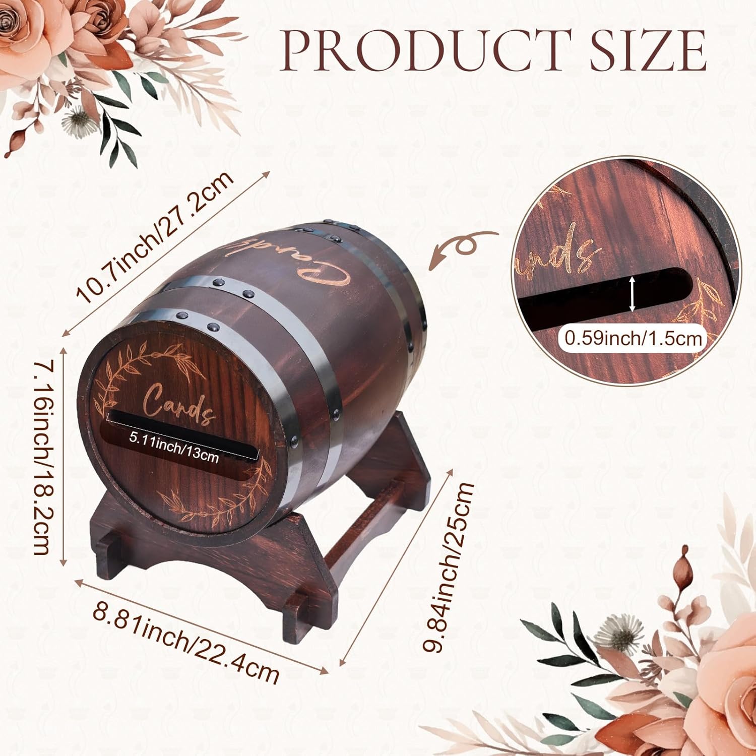 - Vintage Pine Wood Craftsmanship: This wedding card box is made of high-quality pine wood, crafted from durable pine wood, designed in a classic whiskey barrel shape with elegant leaf accents and a bold “Cards” print. It instantly elevates your wedding, graduation, birthday, or baby shower décor