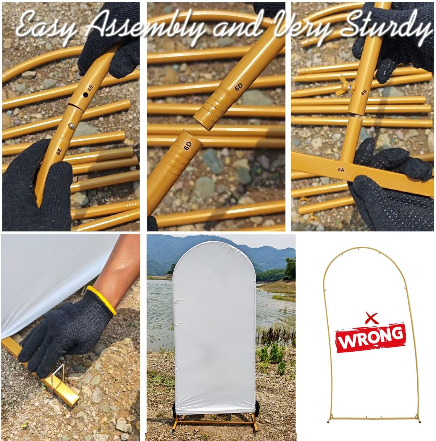 - Easy to Assemble -Each component has a corresponding label, In five minutes, you will get a balloon arch. Be Photo-ready instantly by placing the white spandex covers on the gold arches backdrop stand. dress up your party arch backdrop stand frame with flowers, leaves, lights, or balloons, and watch your vision become reality