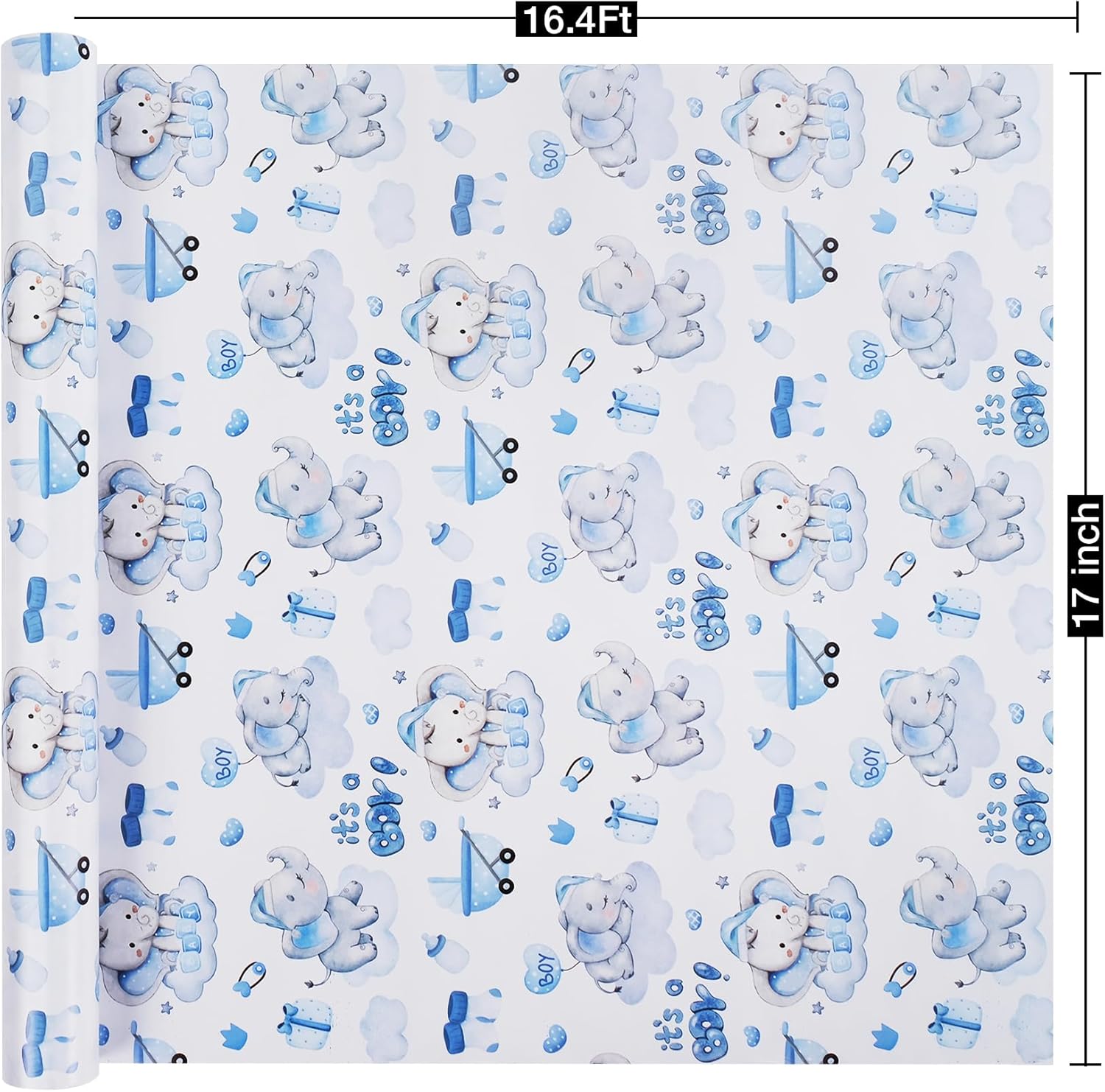 - Cute Baby Shower Design: The baby boy wrapping paper features charming blue elephant and cloud patterns, making it perfect for any baby shower celebration or birthday party for boys