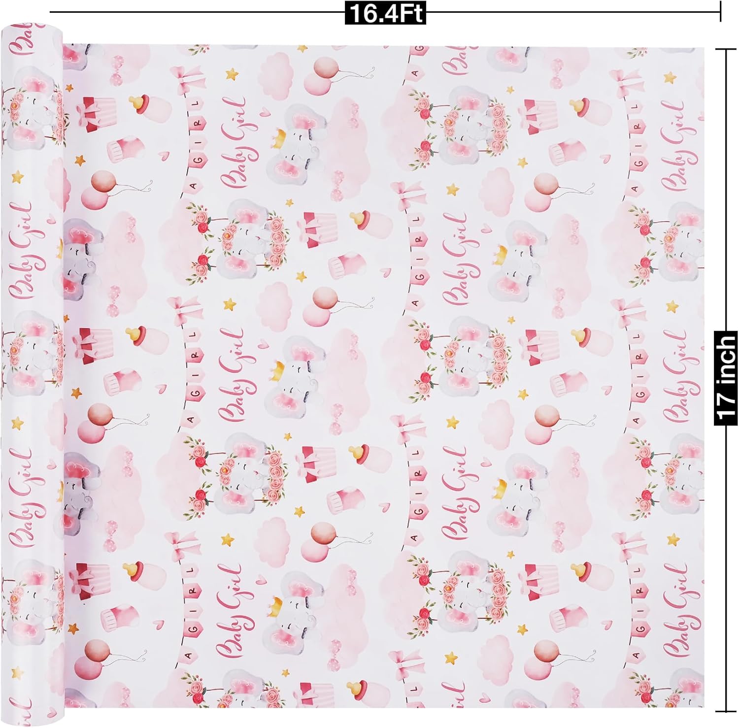 - Cute Baby Shower Design: The baby girl wrapping paper features charming pink elephant and cloud patterns, making it perfect for any baby shower celebration or birthday party for girls