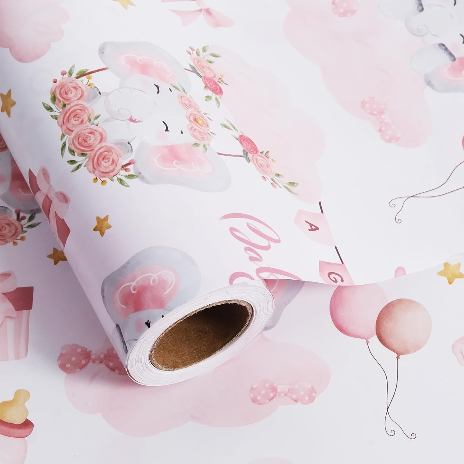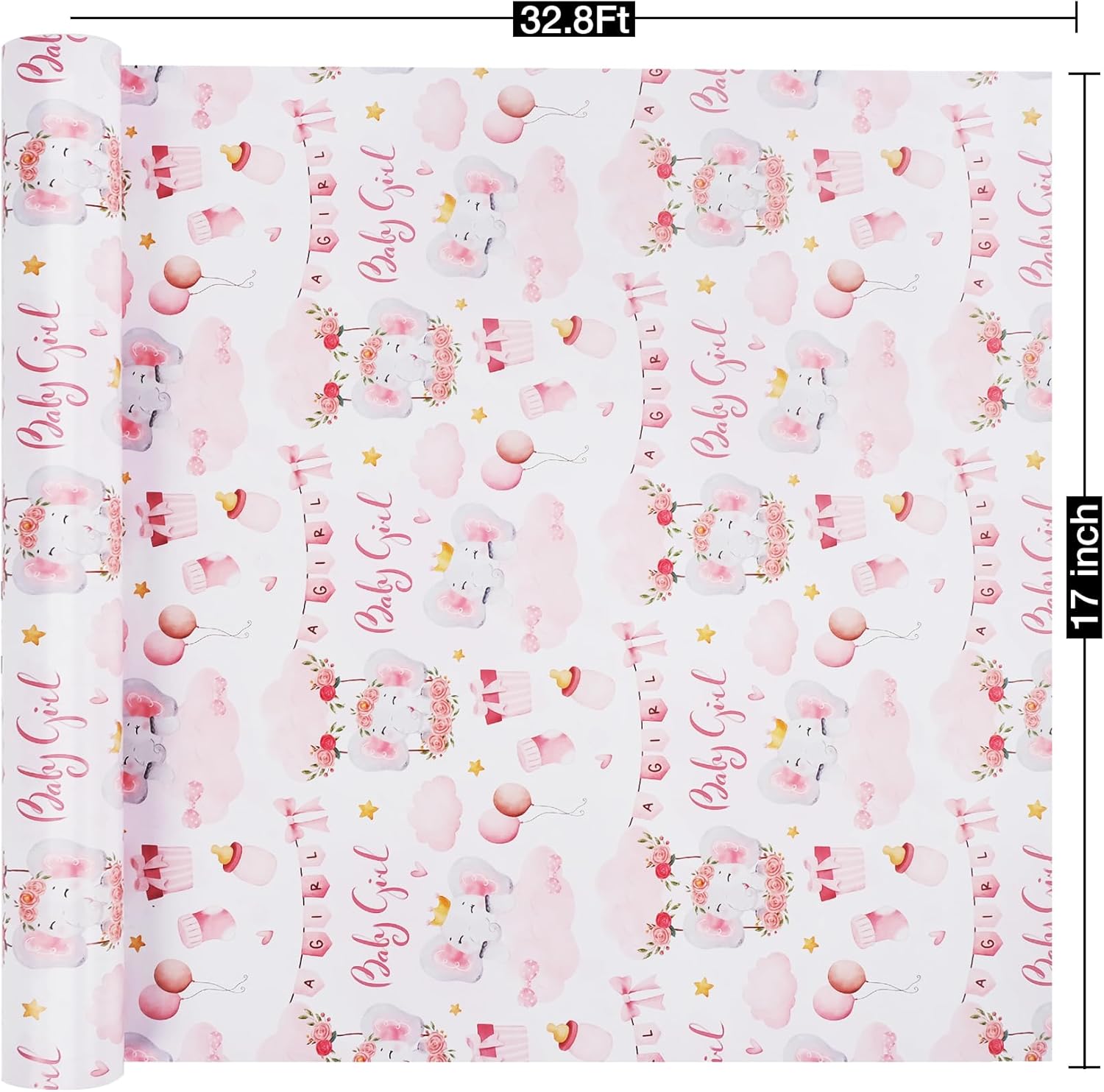 - Cute Baby Shower Design: The baby girl wrapping paper features charming pink elephant and cloud patterns, making it perfect for any baby shower celebration or birthday party for girls
