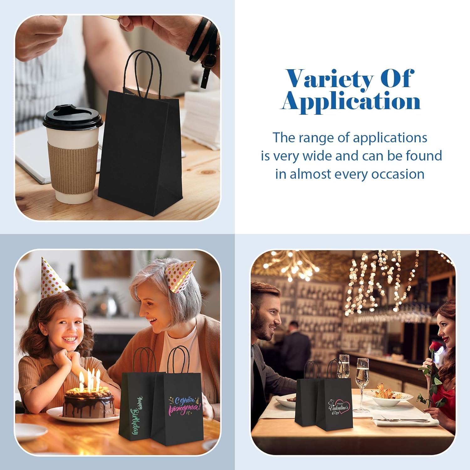 - Small Gift Bags: GSSUSA black paper bags size at 5.25x3.75x8 inches,pack of 20000pcs. Can be used as gift bags, welcome bags, party favor bags, shopping bags, retail bags, merchandise bags .They are great gift bags for party, wedding, baby shower, birthday, anniversary, festival, graduation, thanksgiving, christmas, new year, valentine's day etc. Paper bags with handles also are a popular choice among many retailers.