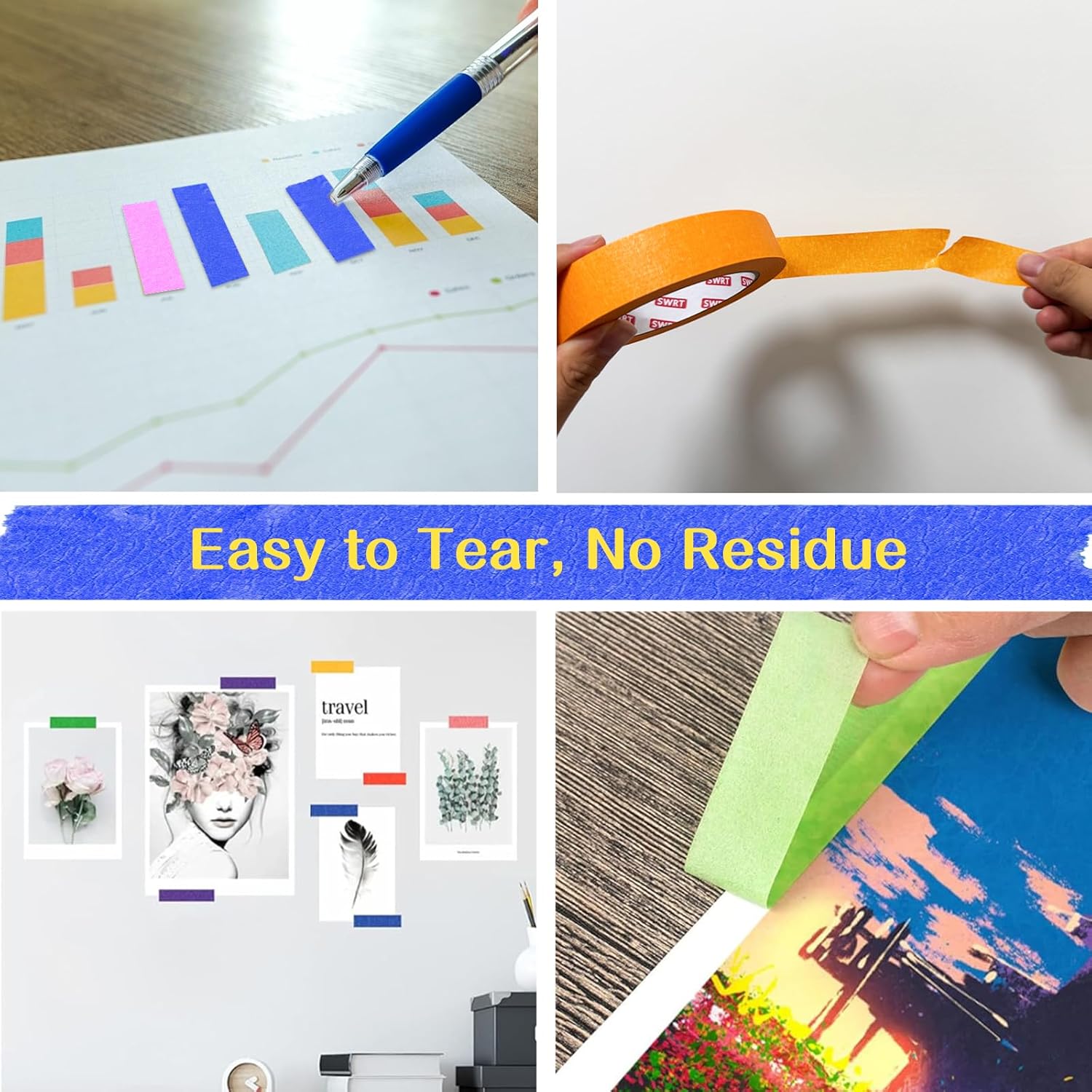 SWRT Colored Masking Tape 6-Pack, 0.7 Inch x 16 Yards Each Roll Rainbow Painter’s Tape Set for Arts, Crafts, Labeling & Teacher – Easy Tear, Residue-Free, Vibrant Colors