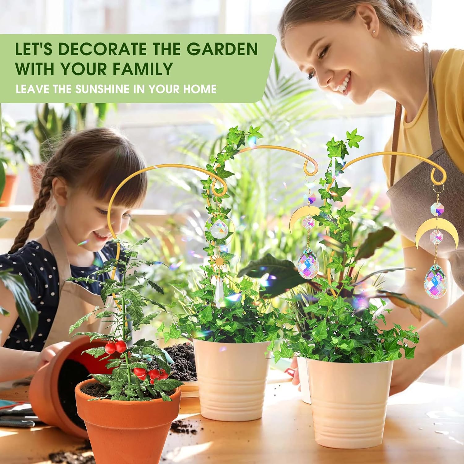 - Durable and Fashionable: The sun catcher is composed of various shapes of crystals and metal sheets in the shape of the sun and moon. Through the reflection of the crystals, it produces charming light and shadow under the illumination of the sun, creating a dreamy atmosphere for your home. The Small Garden Trellis has undergone smooth electroplating treatment, and this metal plant support not only supports climbing plants, but also adds an elegant metallic luster to your home space.