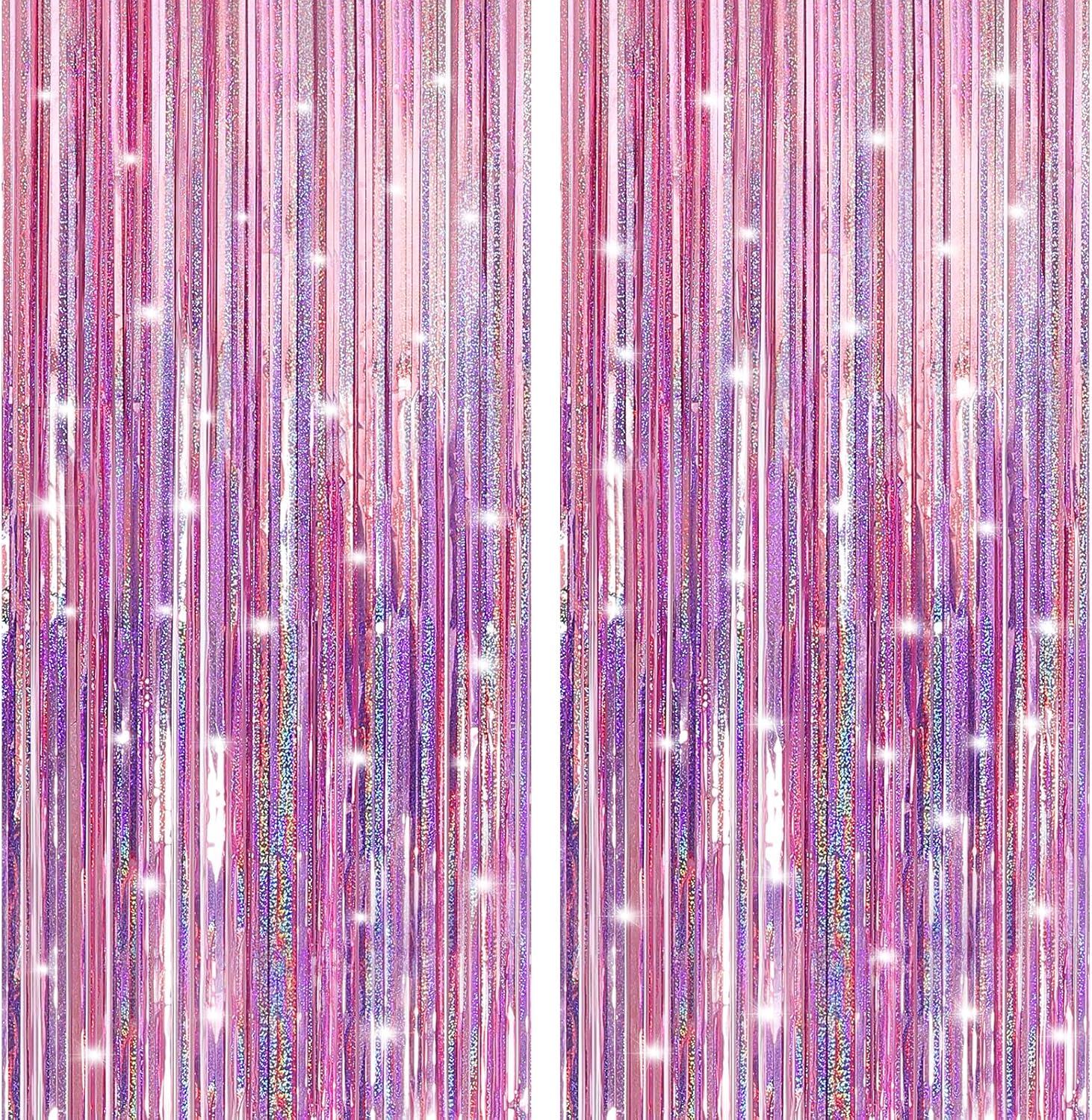 2 Pack Laser Pink Foil Fringe Curtains Streamers Party Decorations 3.3 x 8.2 ft, Tinsel Curtain Fringe Backdrop for Parties, Door Fringe Birthday Streamers, Barbie Backdrop Birthday Party Decorations
