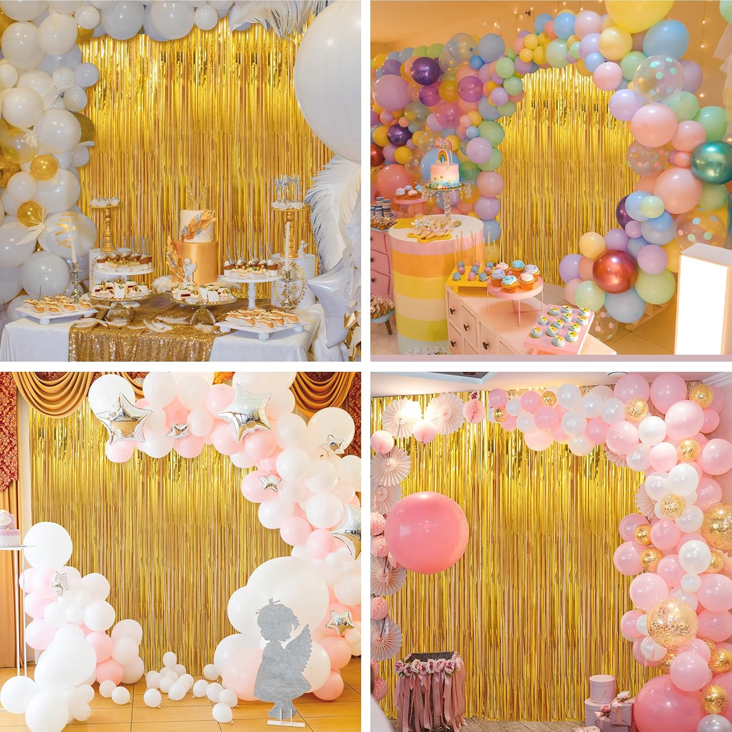 - Durable & Reusable - These party backdrop are made of durable tinsel with a shiny surface, which will keep the shimmer effect all the time, so they can be reused at another time, and light up your parties every time.