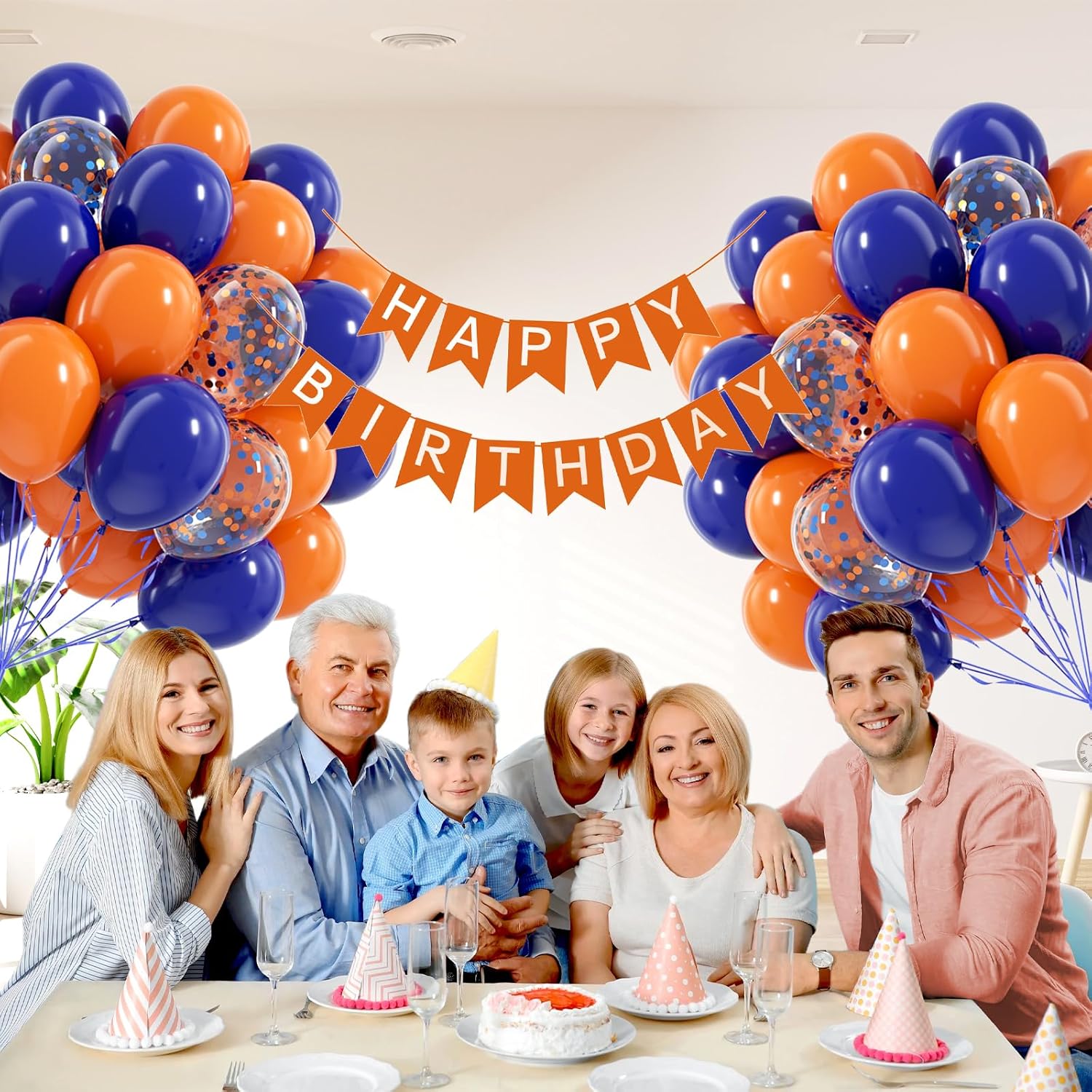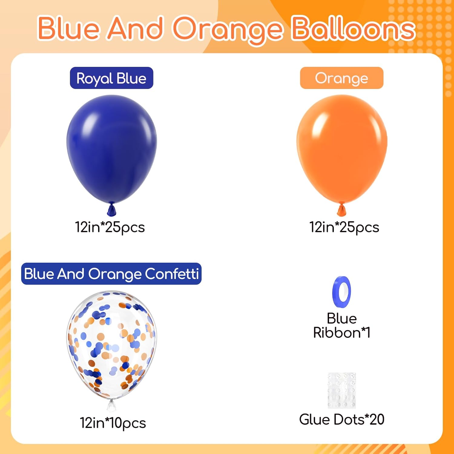 - What You Will Get: The package includes 12inch royal blue balloonsx25, 12inch orange balloonsx25, 12inch blue and orange confetti balloonsx10, glue dotsx20, blue ribbonx1