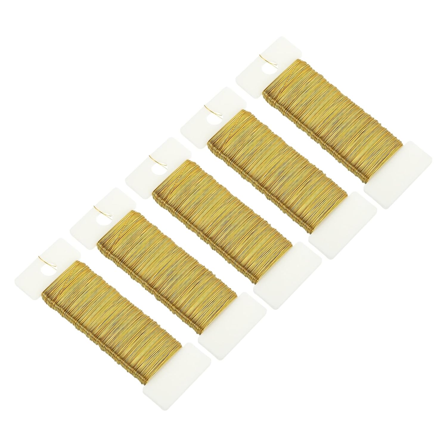 MECCANIXITY 190 Yards/575 Feet 27 Gauge Metal Floral Wire Gold Tone Flexible Paddle Thin Floral Wires for Craft, Christmas Wreath, Flower Arrangement, Wedding, Total 5 Roll