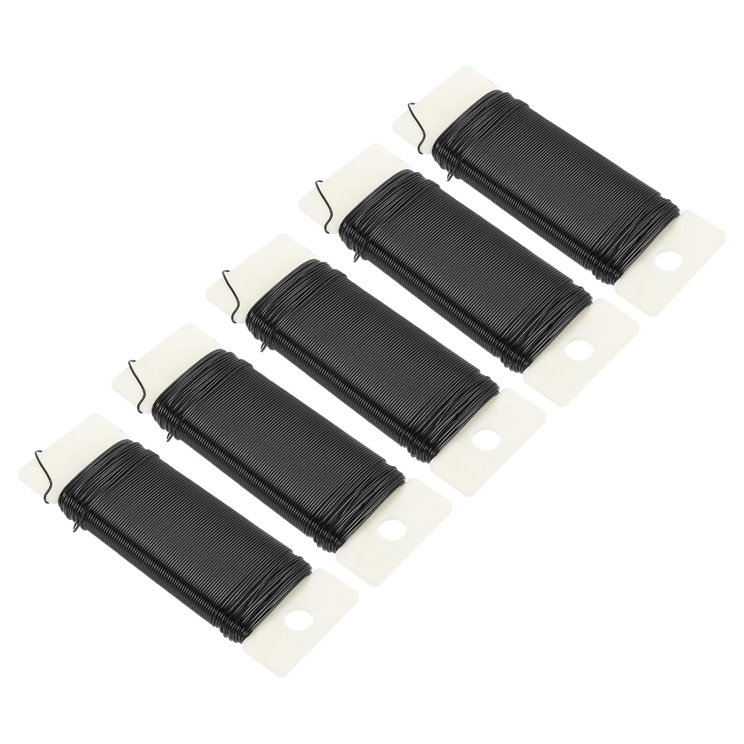 MECCANIXITY 190 Yards/575 Feet Metal Floral Wire 21 Gauge Black Flexible Paddle Thin Floral Wires for Craft, Christmas Wreath, Flower Arrangement, Wedding, Total 5 Roll