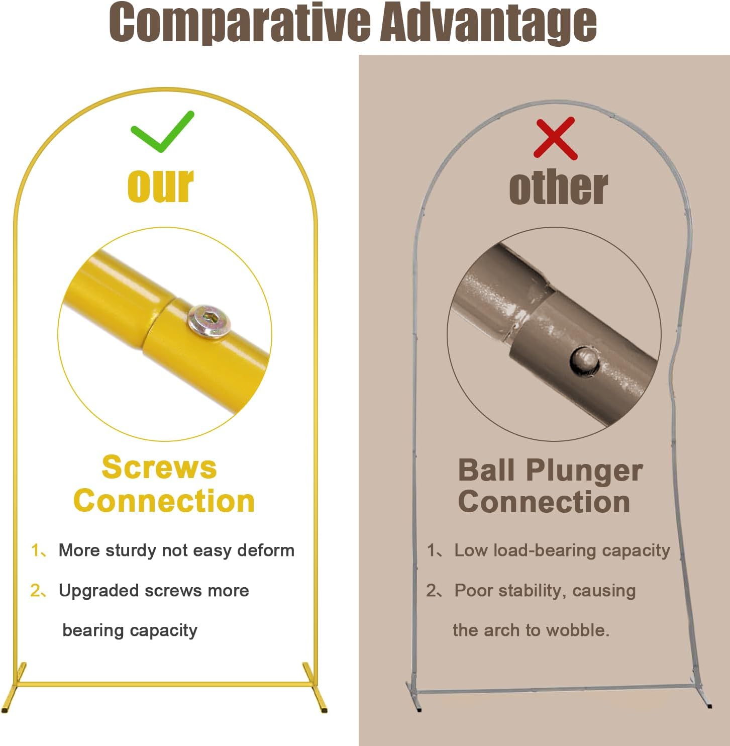 - ⭐Easy to Install - Arch Stand and Cover: Each arch is cut into short sections, wedding arch stand can be easily assembled with wing screws in minutes and reuse for next event. Matching flower, arch cover and cylinder stand, backdrop arch stand create a truly stunning looking for your event.