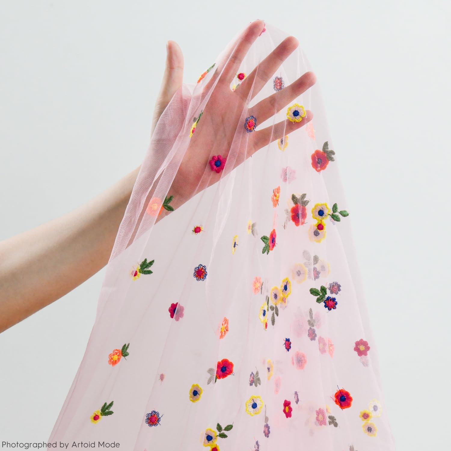 Artoid Mode Pink Embroidery Daisy Gauze Table Runner 120 Inch 10FT, Seasonal Sheer Kitchen Dining Holiday Wedding Birthday Table Decor for Home Party