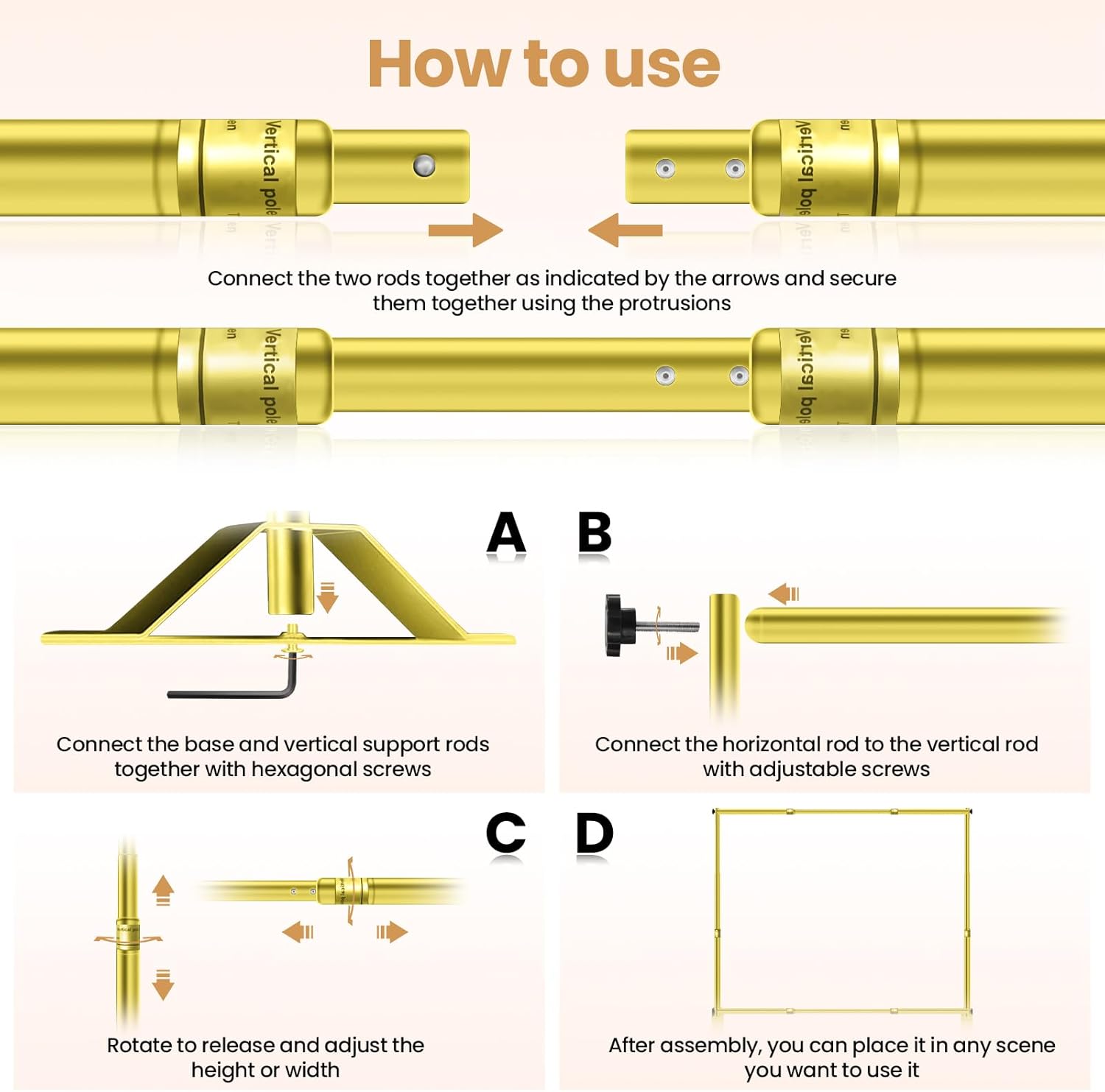 - 【Wide Application】The heavy duty backdrop stand is perfectly suitable for trade show, parties, conferences, promotion banner, weddings, birthday, baby shower, exhibitions, business events and so on. Photography backdrop stand can hang drapes, balloons to make your backdrop amazing, the carrying bag is convenient to store and transport it anywhere with you.