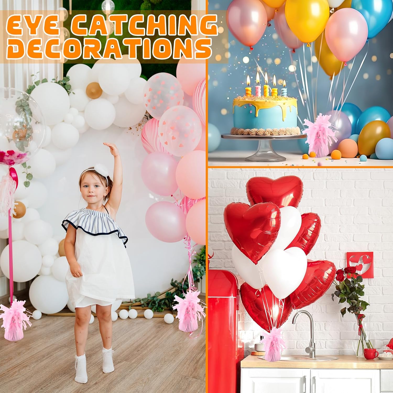 - Easy to Use: Compact and easy to use, these weights fit seamlessly into your party setup. Simply attach the string or ribbon of your balloon to the weight, and enjoy worry decoration, adding elegance to any celebration