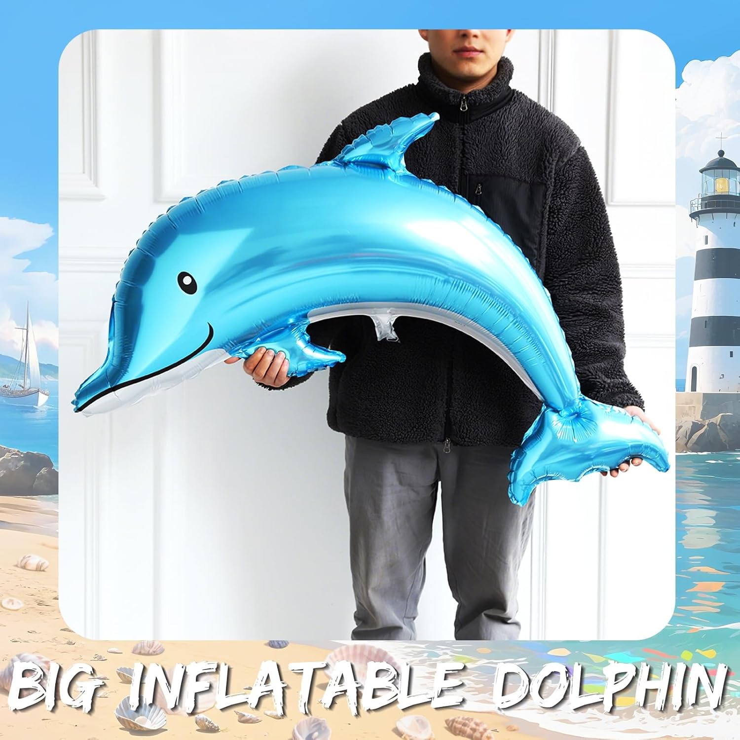 - 154Pcs Vibrant Balloon Arch Kit - Contains 3pcs Iconic Ocean Nautical vibes foil balloons , Uniquely added Inflatable big dolphin , Narwhal Whale , Tropical Fish foil balloons ; 149 pcs vibrant Nautical Theme Colors latex balloons ; Especially added useful glue point and arch strip , to help you build wonderful balloon arch