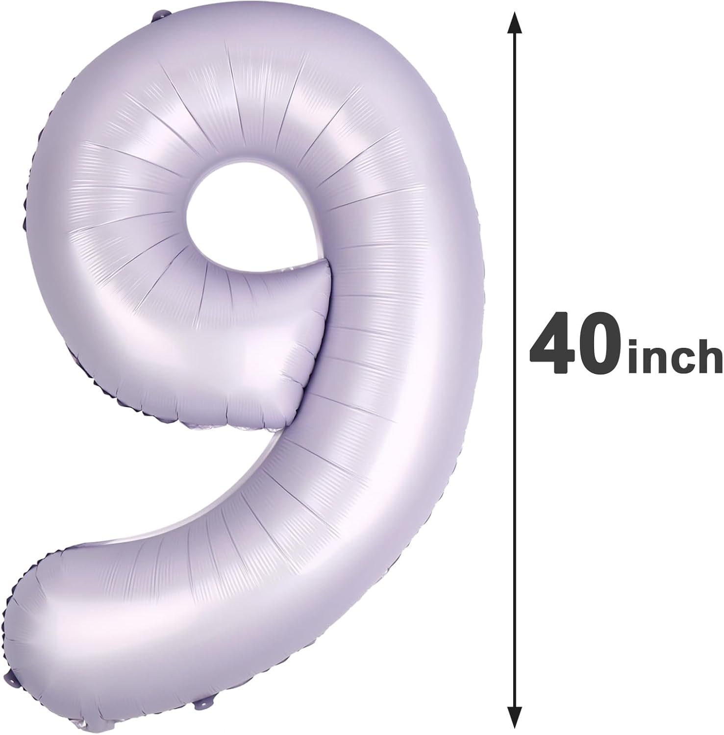 - 1.Make Party Charming with Lavender Number Balloon:You will receive an uninflated 40 inch number 9 balloon.Large number balloons are always the best statement of romance and surprise. Lilac balloons symbolize vitality exoticism,adding glamour to birthday parties.Bright metallic lavender and huge size make birthday decorations for men a highlight of special parties.Choose one or more numbers from 0-9 number balloon,and use 9 19 29 49 69 90 99 balloon numbers to create a lively party!