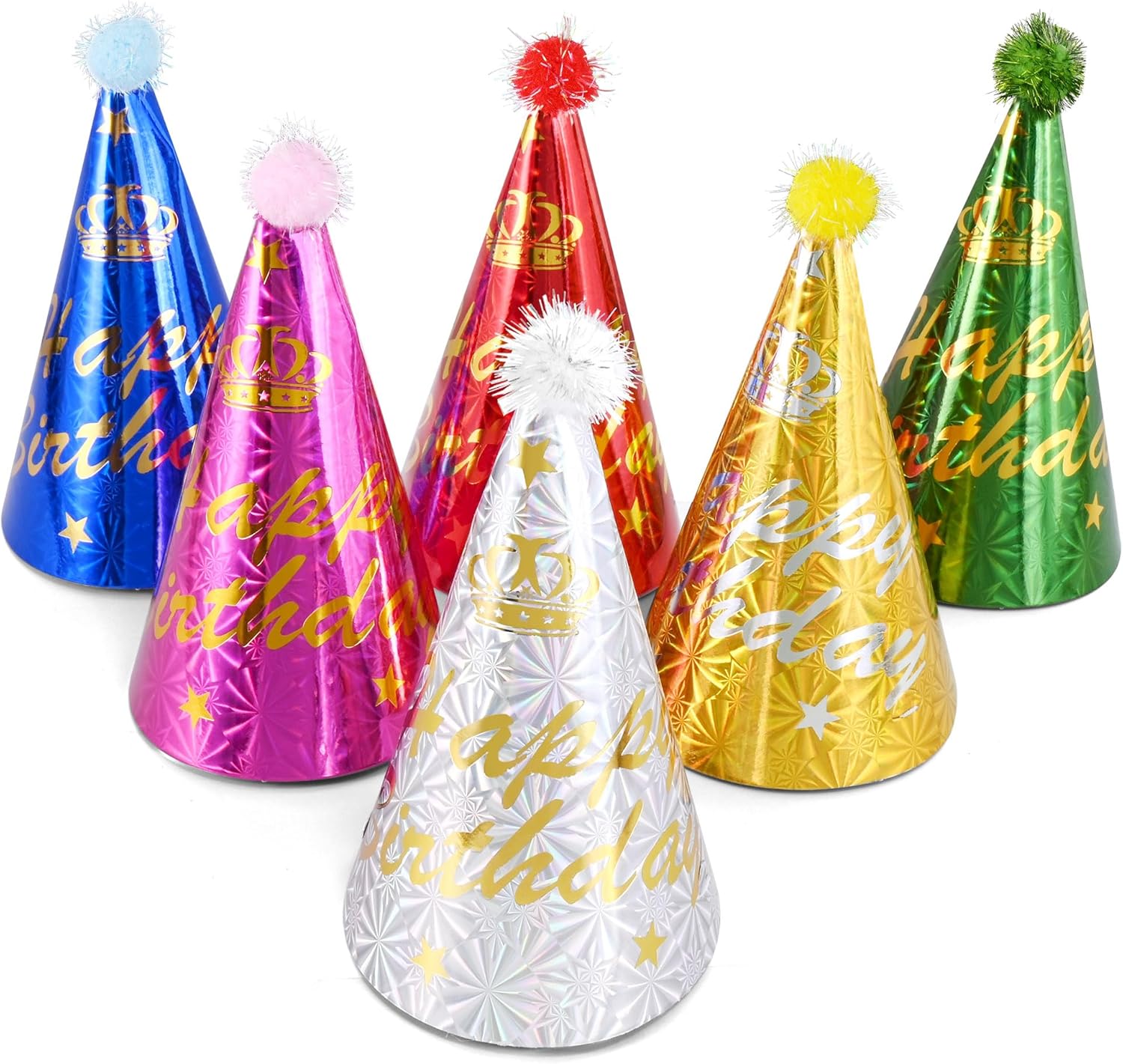 - π[Great Quality] Birthday party hats are made of premium quality cardboard. Light weight will not add burden to your head. Perfect accessories to create great party time and memories!