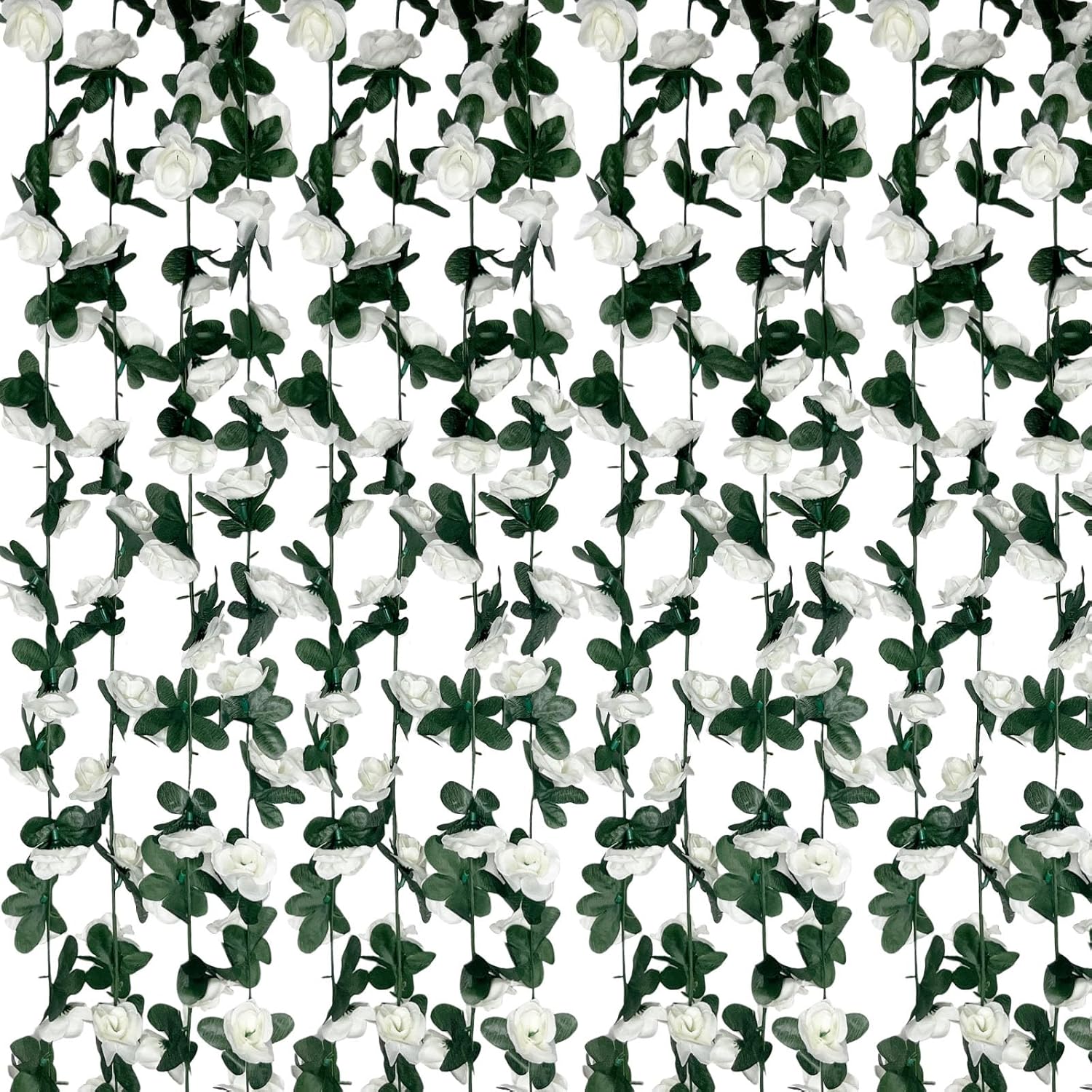 16Pcs 126Ft White Rose Garland, Fake Rose Hanging Flowers, Artificial Flower Vine, Hanging Floral Vine Garland for Wedding, Birthday Party, Wall Arch, Halloween, Christmas Garden Backdrop Decor