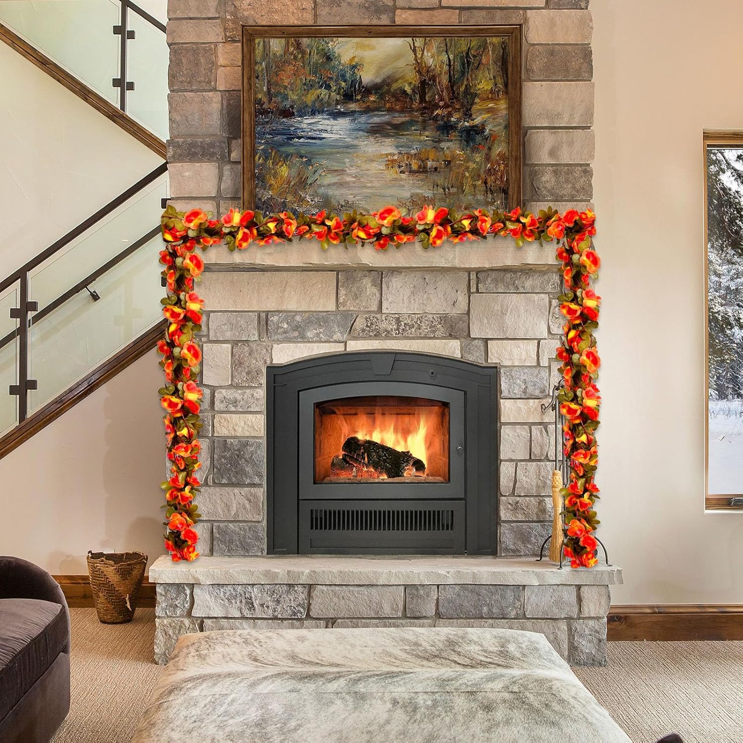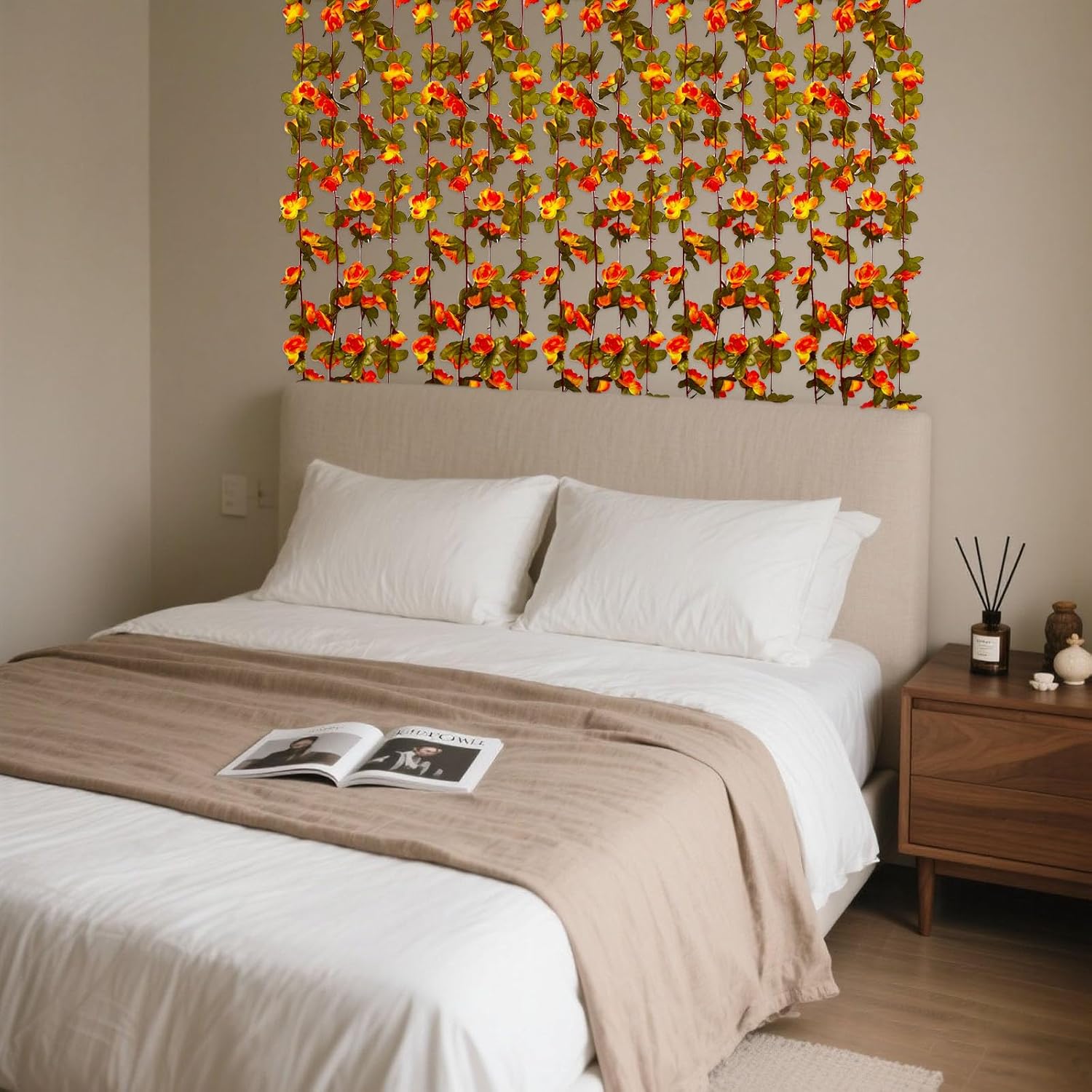 16Pcs 126Ft Orange Rose Garland, Fake Rose Hanging Flowers, Artificial Flower Vine, Hanging Floral Vine Garland for Wedding, Birthday Party, Wall Arch, Halloween, Christmas Garden Backdrop Decor