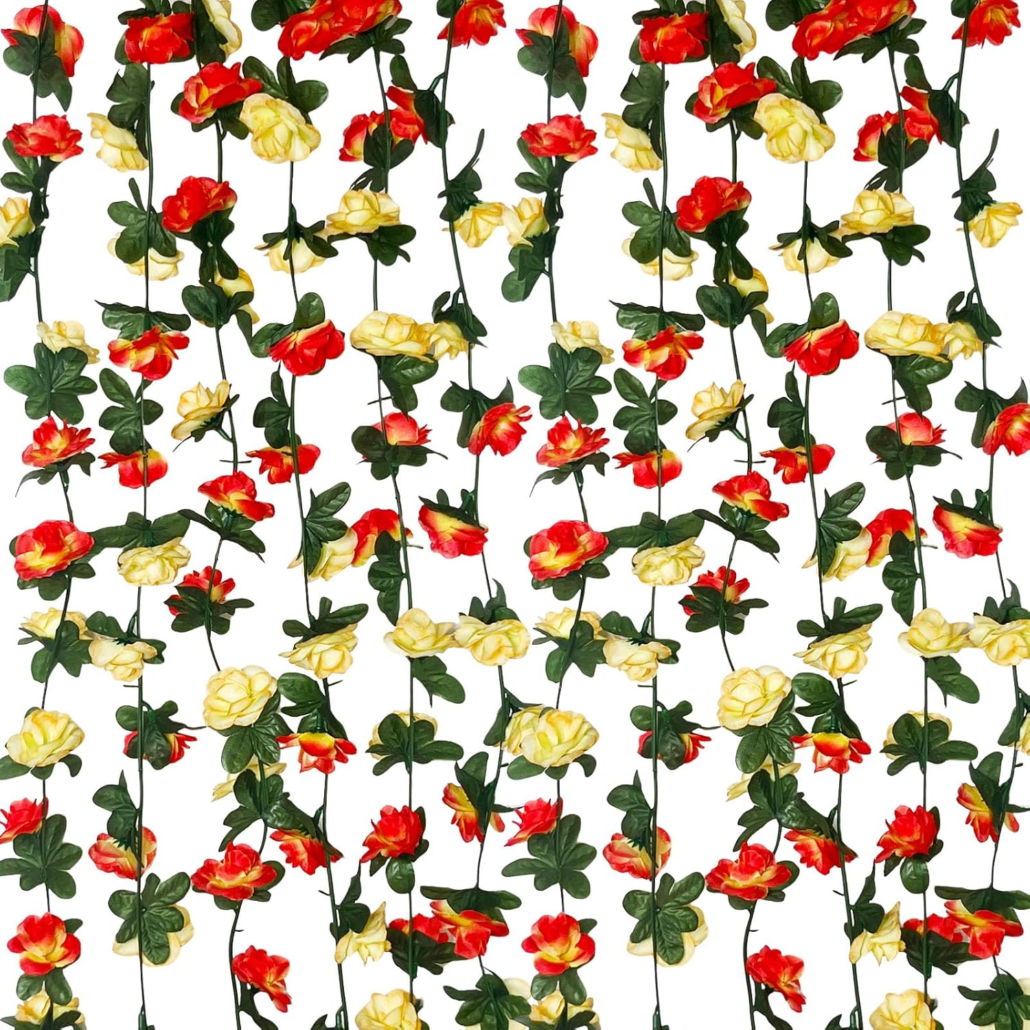 8Pcs 63Ft Pink&Yellow Rose Garland, Fake Rose Hanging Flowers, Artificial Flower Vine, Hanging Floral Vine Garland for Wedding, Birthday Party, Wall Arch, Halloween, Christmas Garden Backdrop Decor
