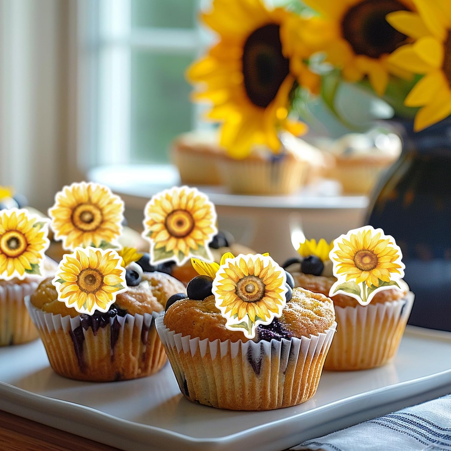 - High Quality Material: Fyeoxle edible Sunflowers Cupcake Toppers are made of high quality wafer Rice Paper and edible ink, allowing them to stand effortlessly in both buttercream and standard icing. They can also be applied flat if desired. Safe to put them on cakes, cupcakes, ice cream, fruits, pie, dessert, cheese,brownies and will stand steady on the top