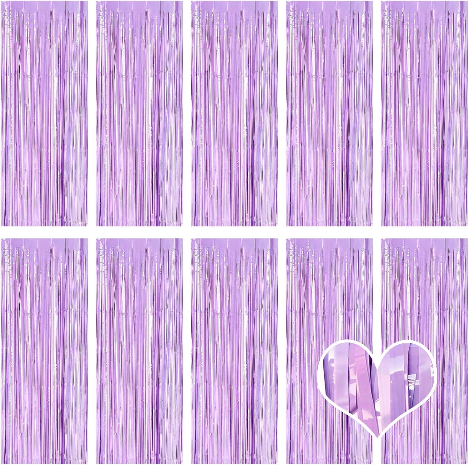 10 Pack Purple Foil Curtain Backdrop 3.2ft x 8.2ft Macaron Tinsel Foil Fringe Curtains Streamer Photo Booth Backdrop for Birthday Party Baby Shower Engagement Wedding Holiday Decor (Macaron Purple)