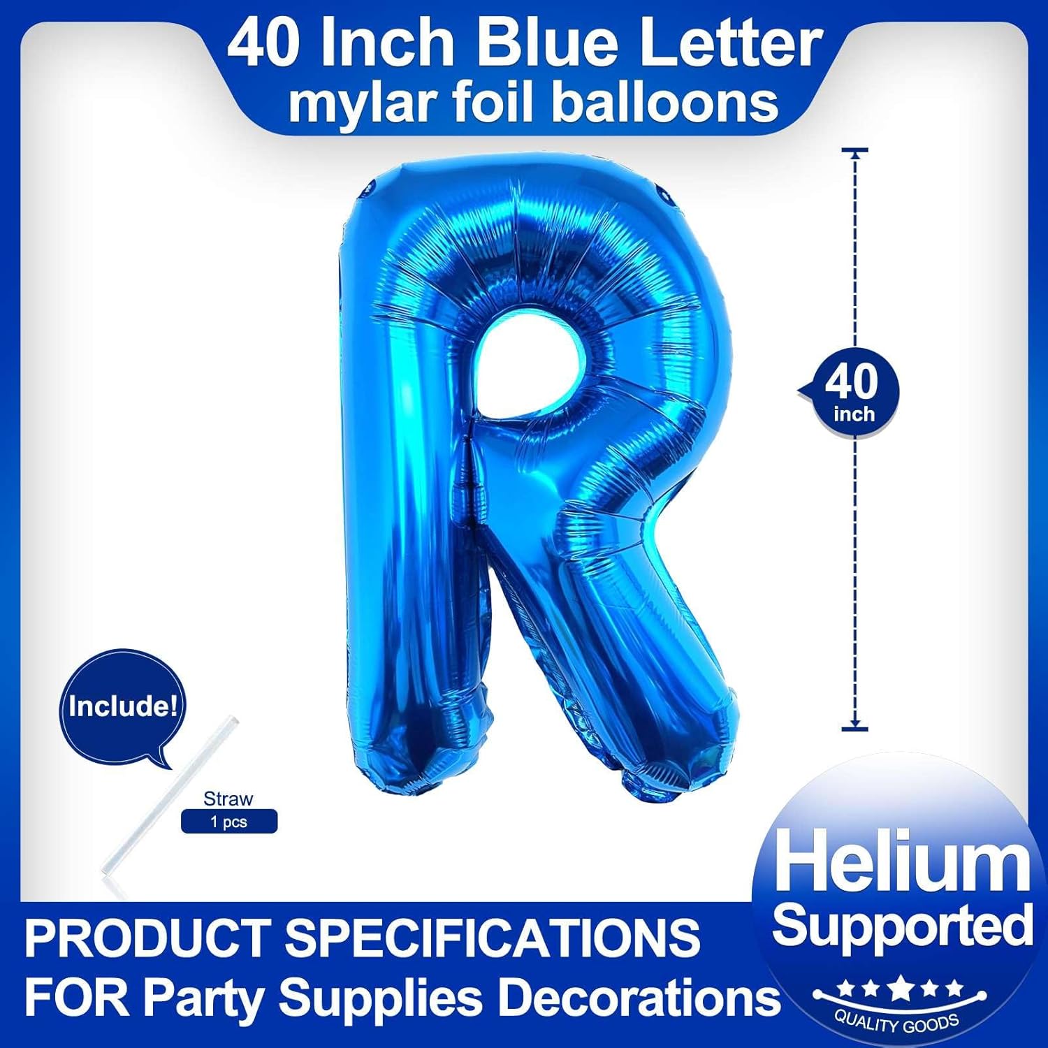 - Package included:One Blue Letter R Balloon*1,straw*1,40 inch Blue letter balloon