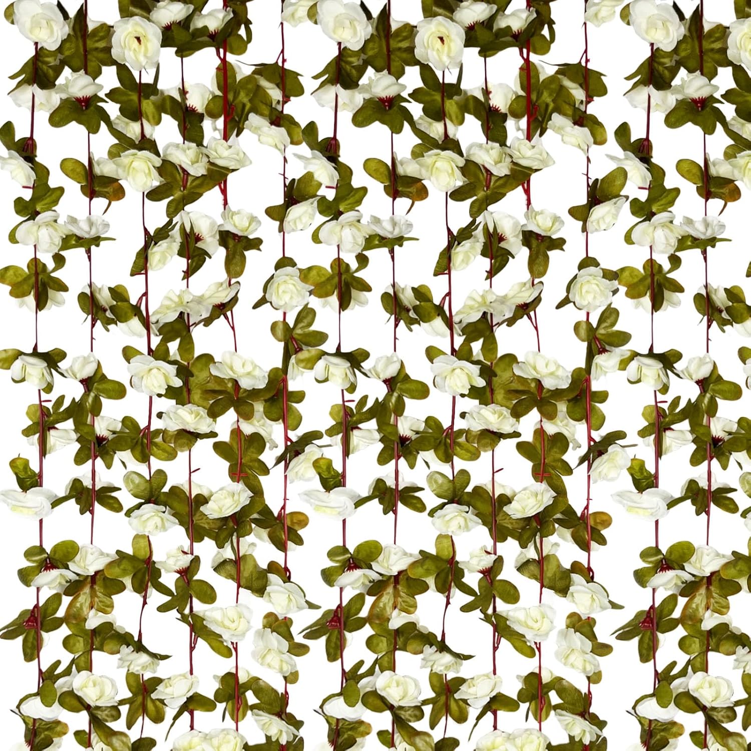16Pcs 126Ft Cream Rose Garland, Fake Rose Hanging Flowers, Artificial Flower Vine, Hanging Floral Vine Garland for Wedding, Birthday Party, Wall Arch, Halloween, Christmas Garden Backdrop Decor
