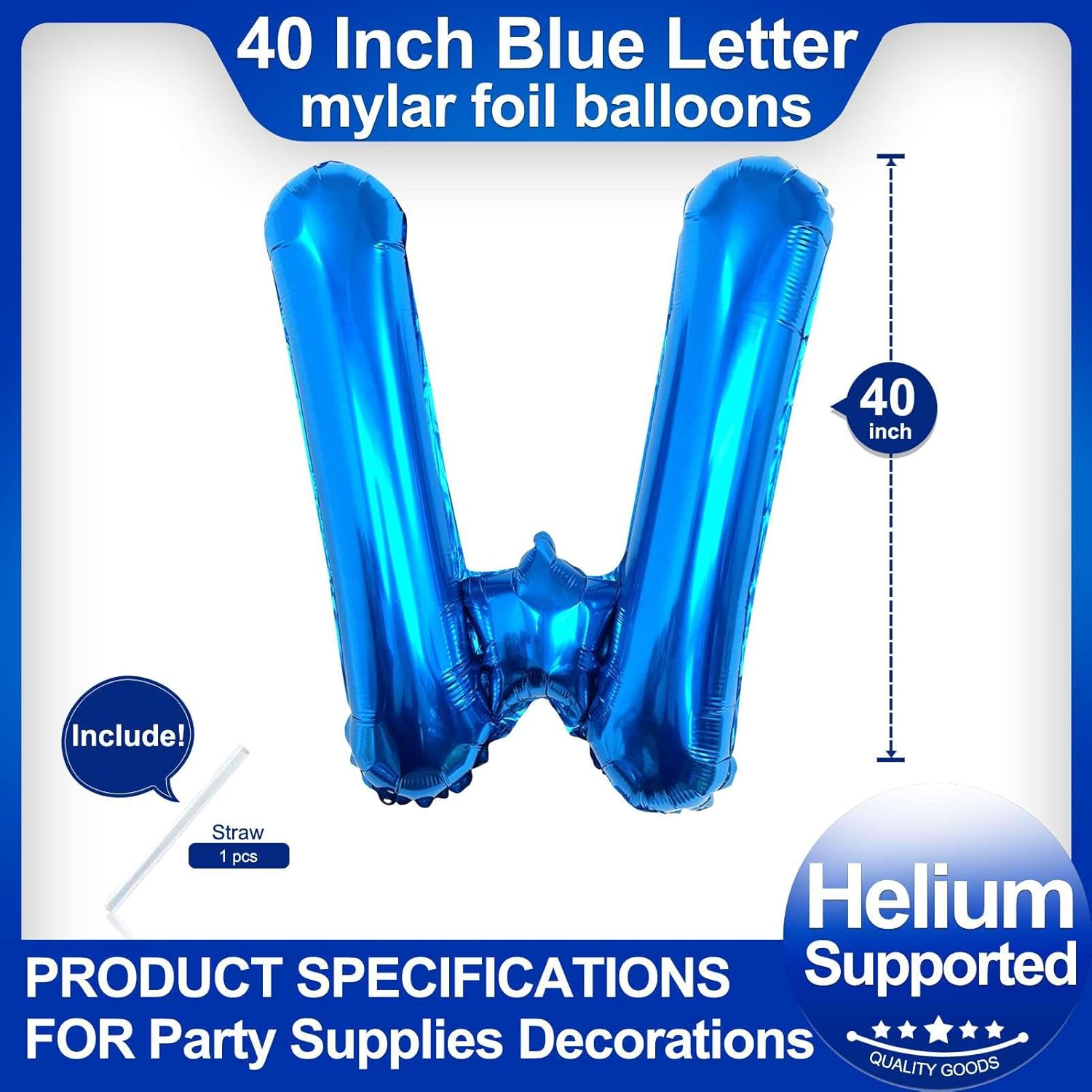 - Package included:One Blue Letter W Balloon*1,straw*1,40 inch Blue letter balloon