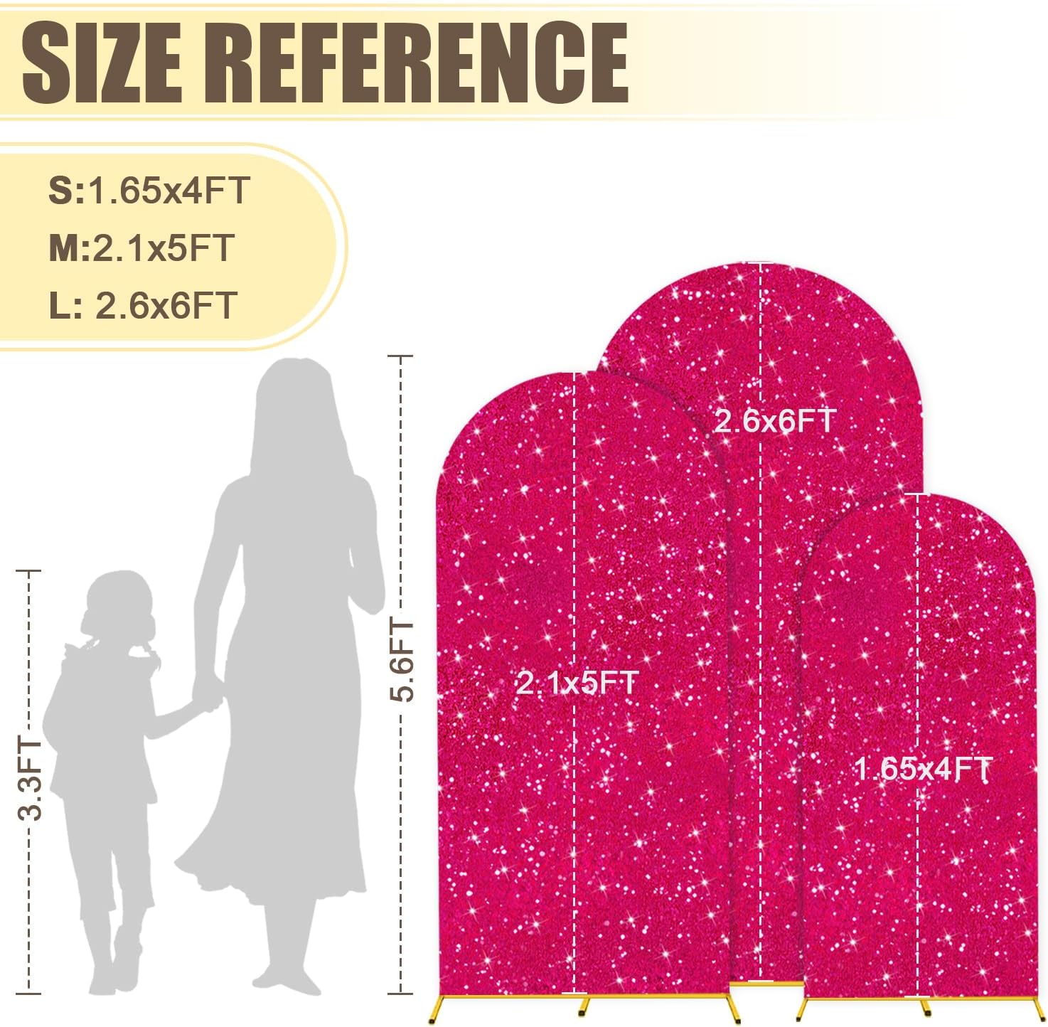 - ⭐Size Guide - Arch Backdrop Stand and Cover Set: The size of arch backdrop stand set about are 1.65FTx4FT(W x H), 2.1FTx5FT(W x H), 2.6FTx6FT(W x H) with hot pink arch cover set. Metal arch backdrop stand set add a graceful and striking look for your party or event.
