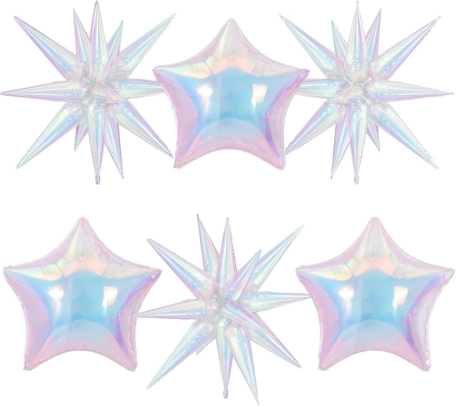6Pcs Iridescent Foil Balloons, 22" 18" Star Iridescent Balloons Large Holographic Spike Cone Clear Foil Balloon for Birthday Baby Shower Mermaid Rainbow Wedding Party Decorations
