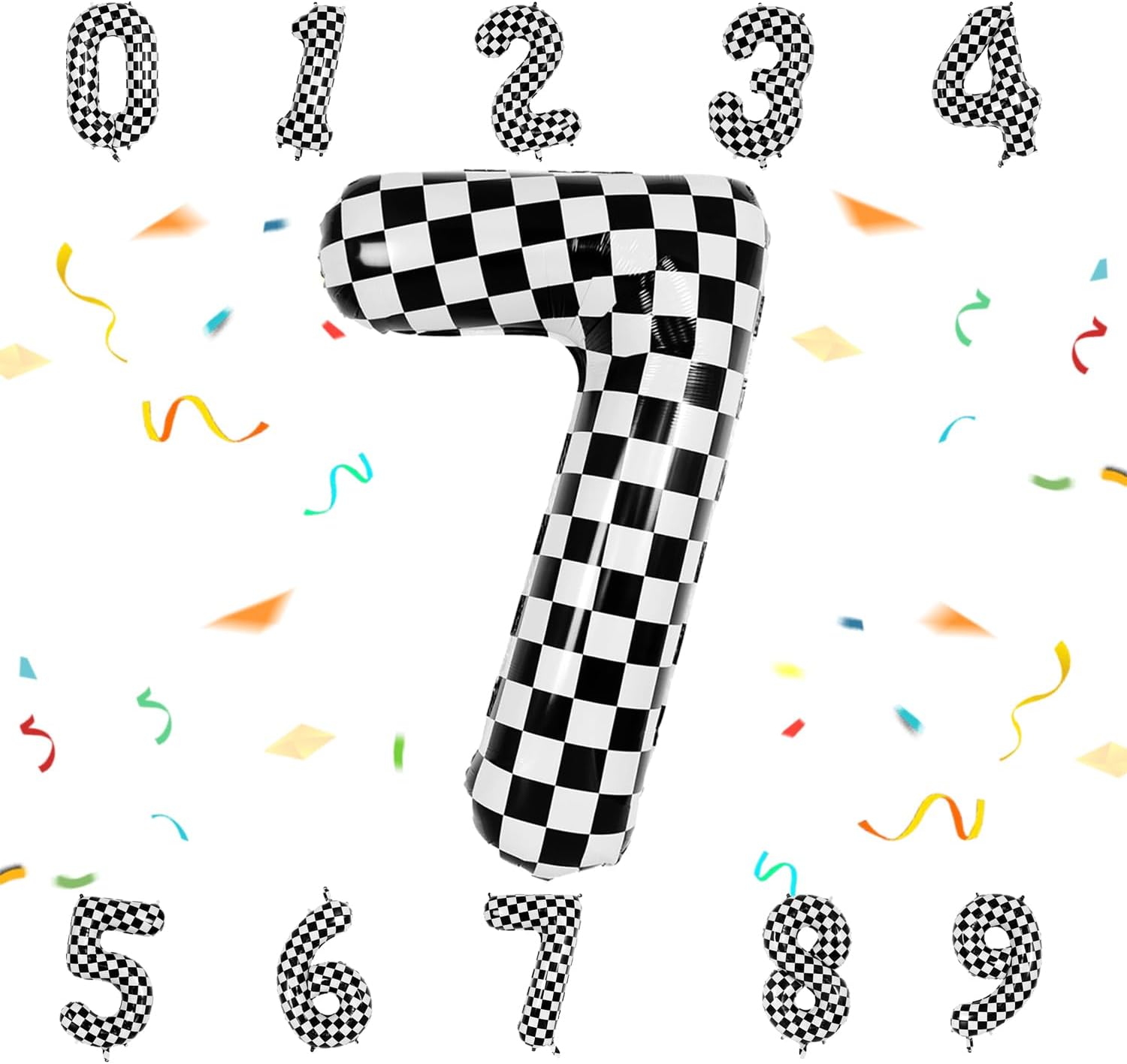 40 Inch Checkered Number Balloon - Race Flag Pattern Big Helium Balloon for Birthday Party Decorations - Black & White Balloon for Kids Adults Party Supplies (Racing Car, Number 7)