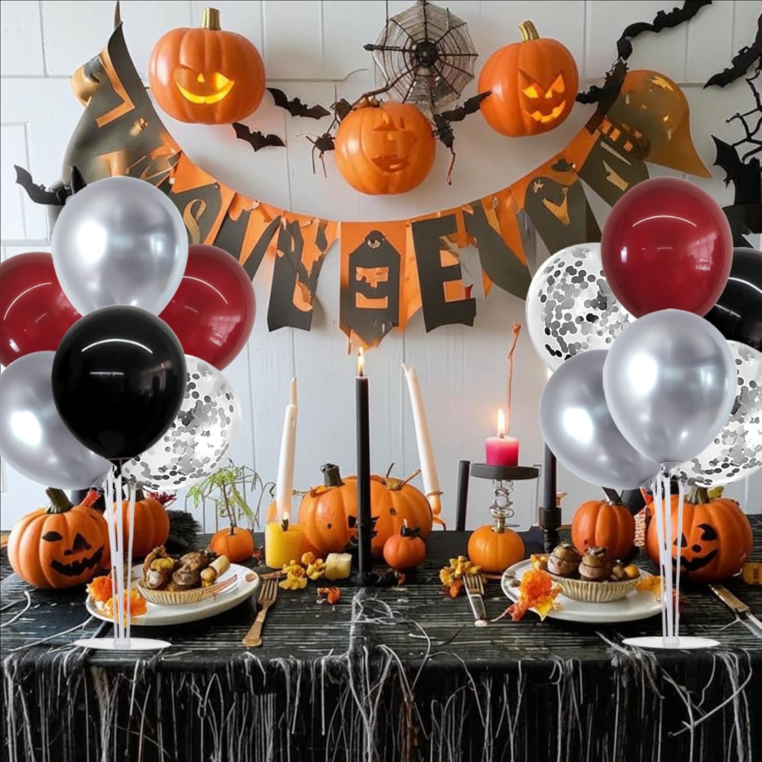 TONIFUL 4 Set Burgundy Red Black Silver Balloon Stand Centerpiece Table Decorations for Graduation Decoration 2025,Christmas Party Decoration,Halloween,New Year's Eve,Anniversary,Birthday Decorations