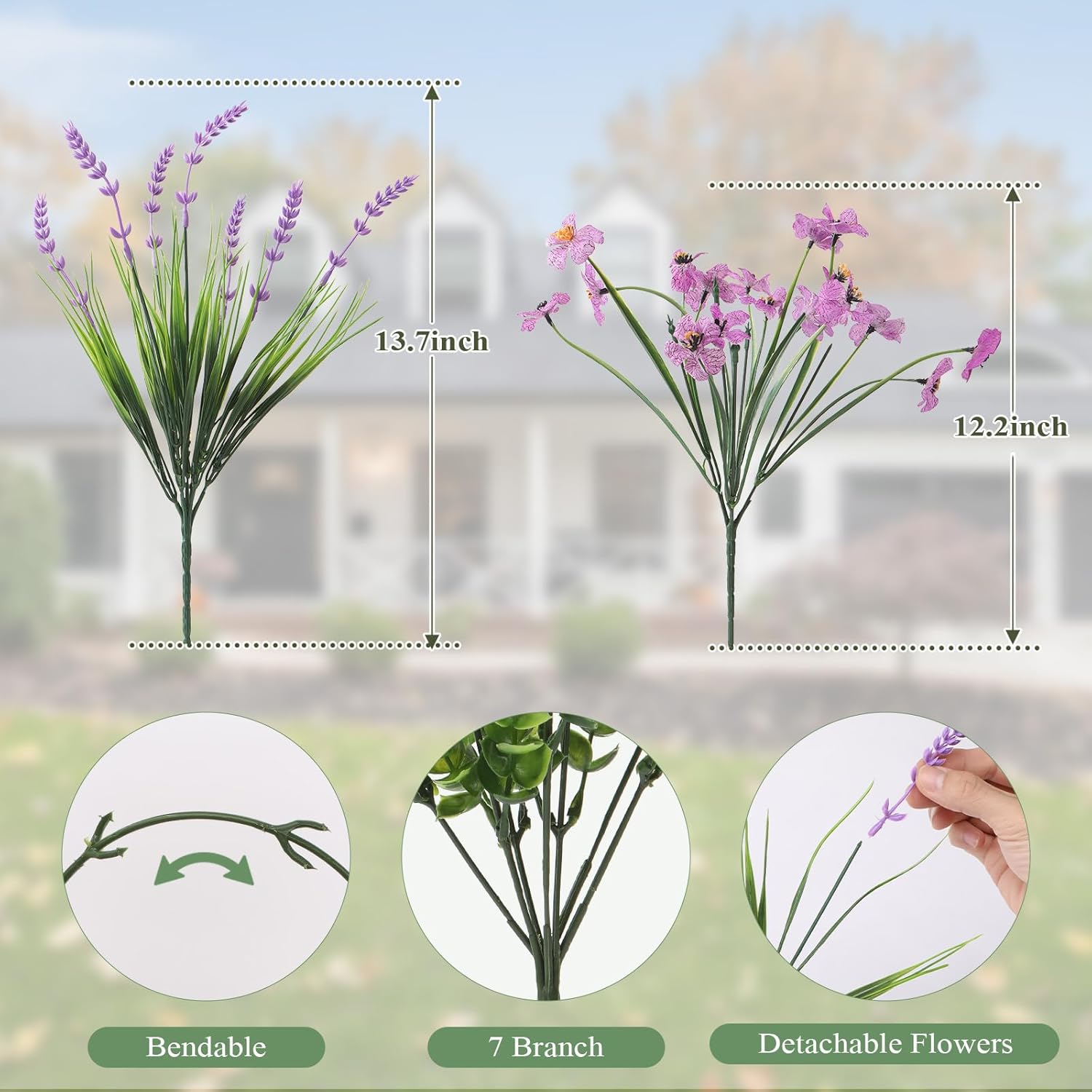 - Realistic Faux Flower Bouquets: The colorful fake flowers with realistic textures and flexible stems are very close to real flowers. Ideal decoration for garden, front doors, window, pots, etc.