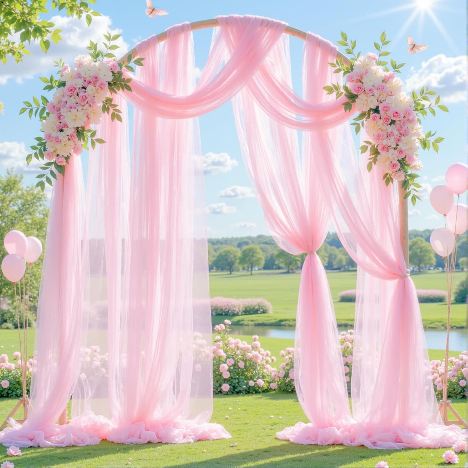 - Wedding Arch Draping Fabric: 100% high-grade polyester tulle, offering unmatched softness and durability. Delicate matte finish with a subtle sheen that catches light elegantly without glare (perfect for photography).Wrinkle-free: Packed on roll with anti-crease lining—unfurls ready-to-use.
