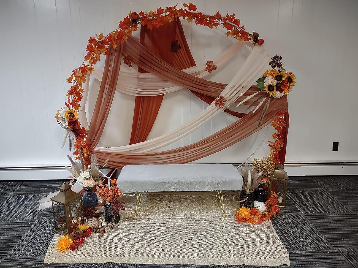 - Wedding Arch Drapes : Wrinkle-Resistant wedding arch draping fabric versatility allows for creative styling with florals, balloons, or lighting, such as a blend of lush greenery, delicate floral arrangements, and soft draping fabrics that create a warm and inviting ambiance. This wedding arches for ceremony is perfect for creating beautiful pleats or letting it float off the floor, adding a very delicate, soft, beautiful touch to your stage at any event.