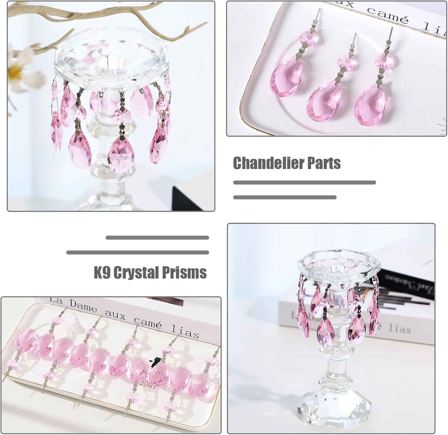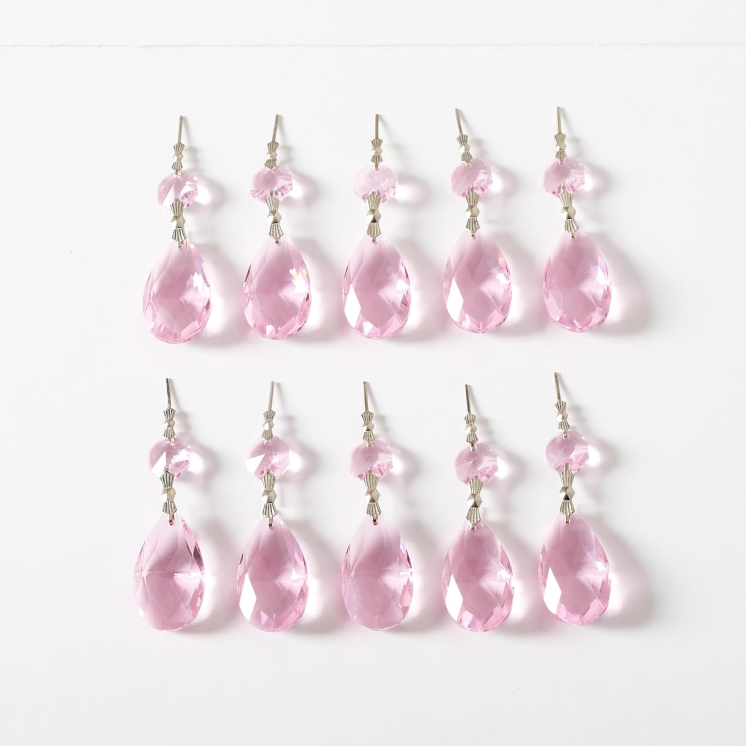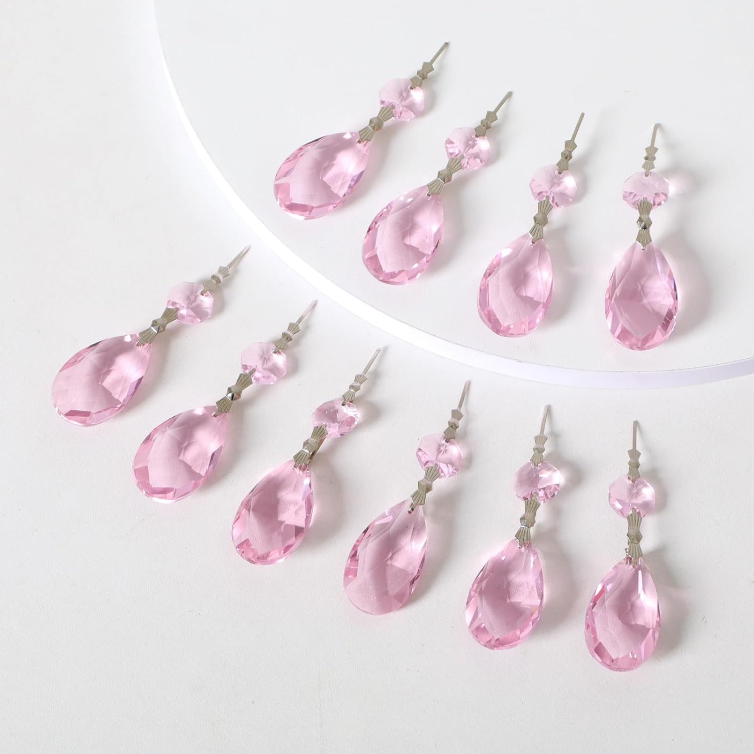 10pcs Crystal Prisms Chandelier Pink Ornament Pendants Rainbow Maker 38mm Drop Prism Hanging Prisms for Wedding Party Chrismtmas Decoration DIY Jewelry