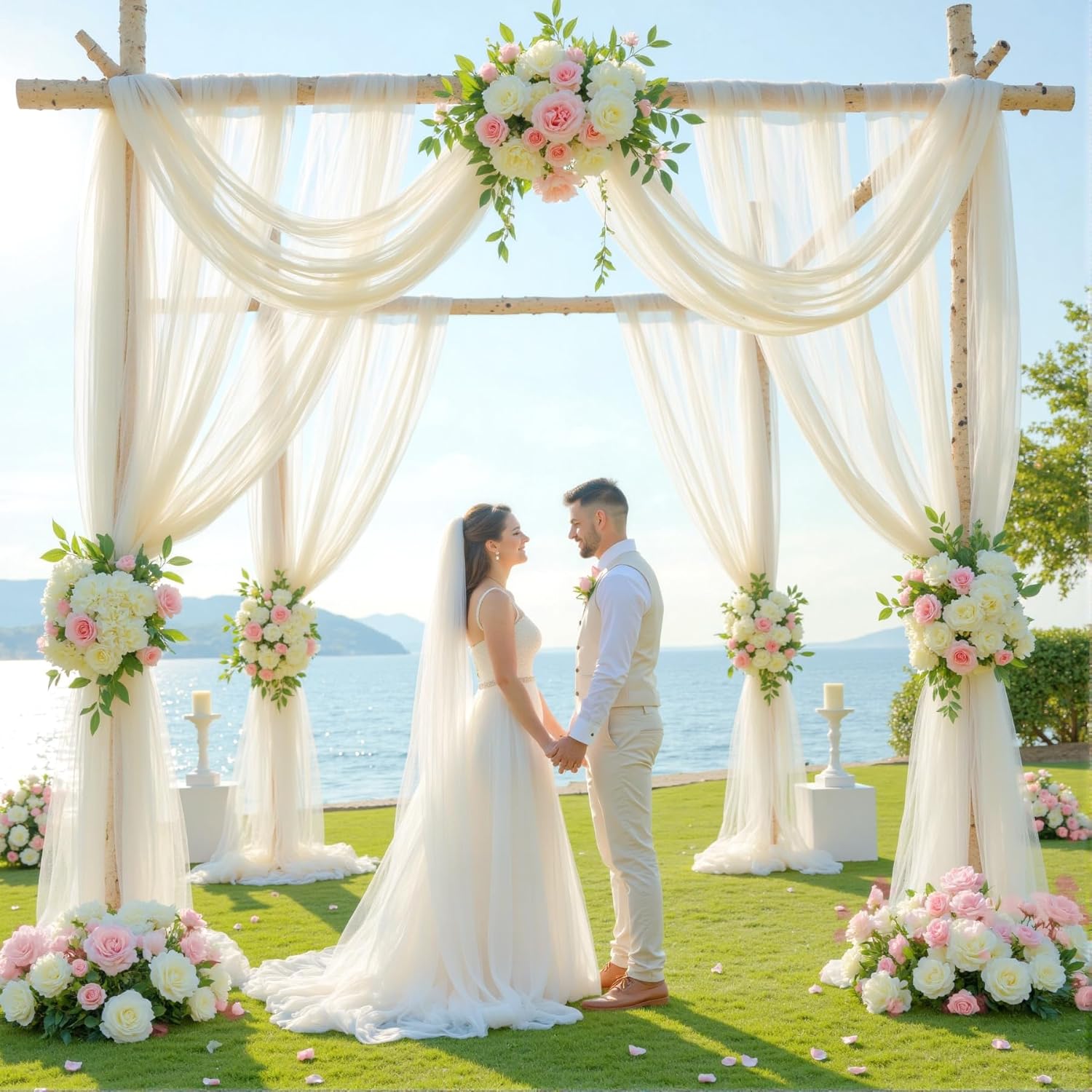 - Wedding Arch Draping Fabric: 100% high-grade polyester tulle, offering unmatched softness and durability. Delicate matte finish with a subtle sheen that catches light elegantly without glare (perfect for photography).Wrinkle-free: Packed on roll with anti-crease lining—unfurls ready-to-use.