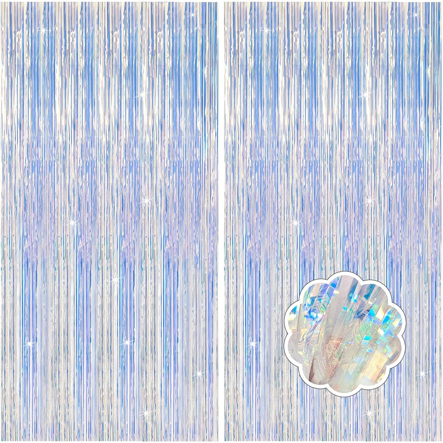 2 Pack Iridescent Party Decorations Foil Fringe Tinsel Backdrop Glitter Curtains Shimmer Wall Backdrop 70s 80s 90s Disco Theme Party Decorations Happy Birthday Easter Graduation Supplies