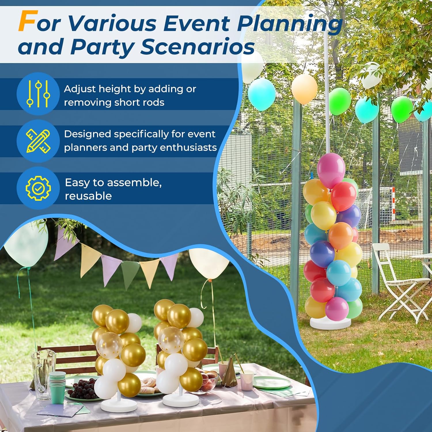 - âś… Suitable for Various Party Decorations: The balloon stands for floor support uses splicing design, equipped with 8 freely combinable connecting rods. By adding or removing extension rods, the column height can be adjusted from 1.3 feet to 5 feet, suitable for table-top balloon center decorations and floor-standing balloon tower supports. You can unleash your creativity to create custom party decorations!