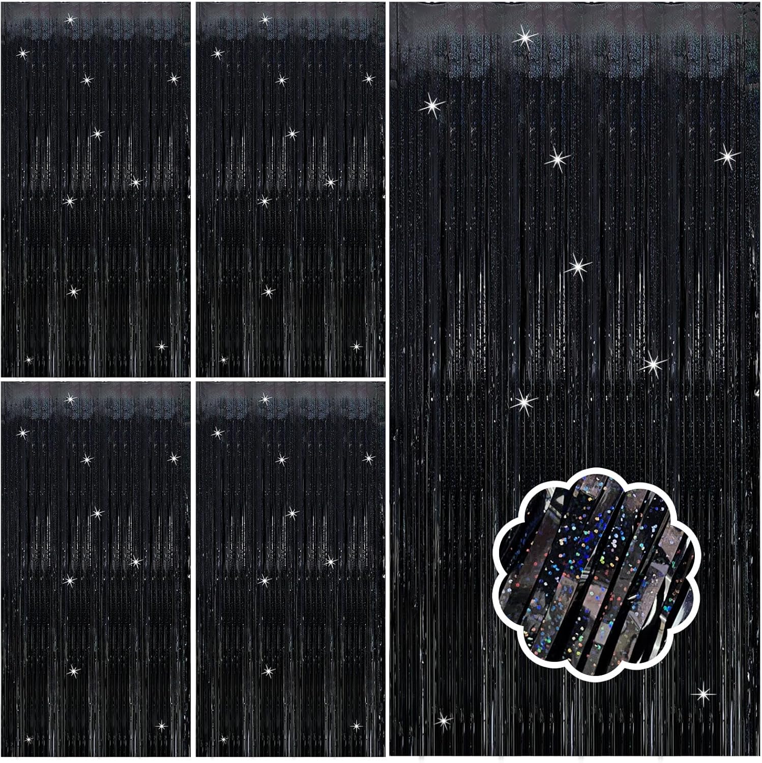 5 Pack Black Photo Backdrop Party Streamers Metallic Tinsel Curtains for Birthday Halloween Decor Bachelorette Wednesday Wizard Party