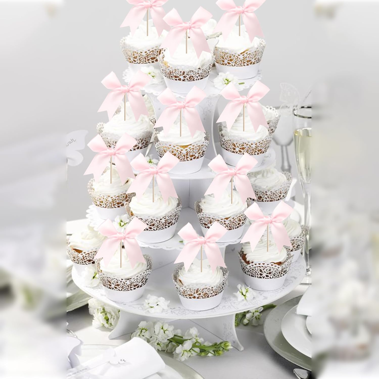 - No Assembled Required ! These bow cupcake toppers are assembled in advance,so you don't need to DIY it by yourself,which can save you time and effort during the process of party preparation; You can insert them into your cake or cupcakes directly.