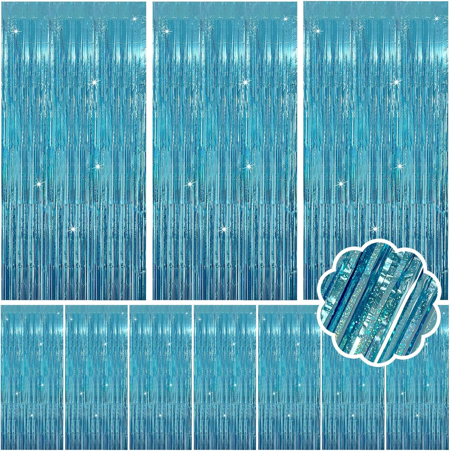 - Material: This high-quality tinsel curtain is crafted from shimmering metallic tinsel, creating a dazzling blue backdrop or vibrant colored display. Its reflective surface enhances any space as a stunning shimmer wall backdrop, perfect for parties and events. Fade-resistant, reusable, and instantly transformative.