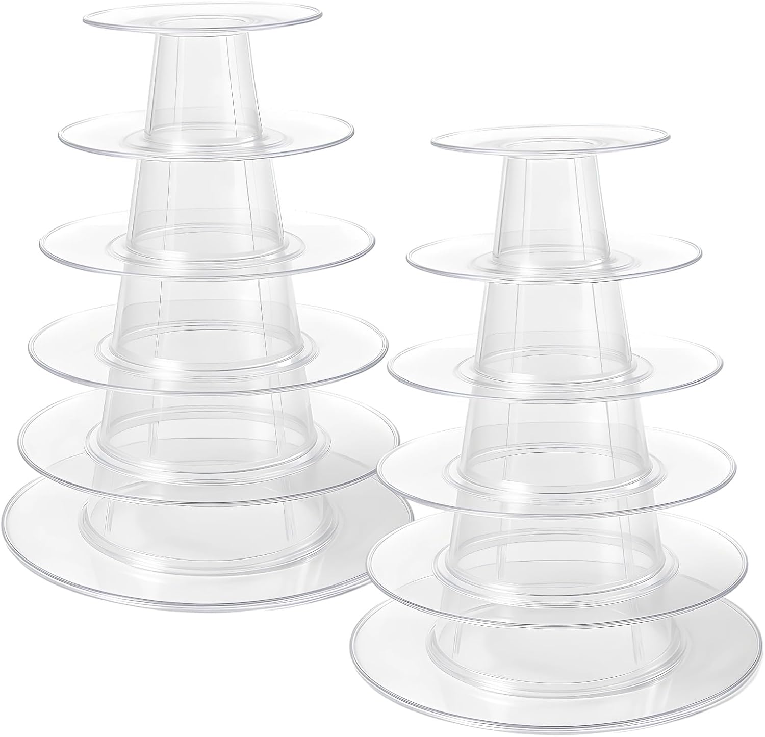 6-Tier Macaron Display Tower, Multi-Functional Cake Stand for Weddings & Parties, Set of 2, Includes Clear Plastic Design, Holds Up to 95 Macarons