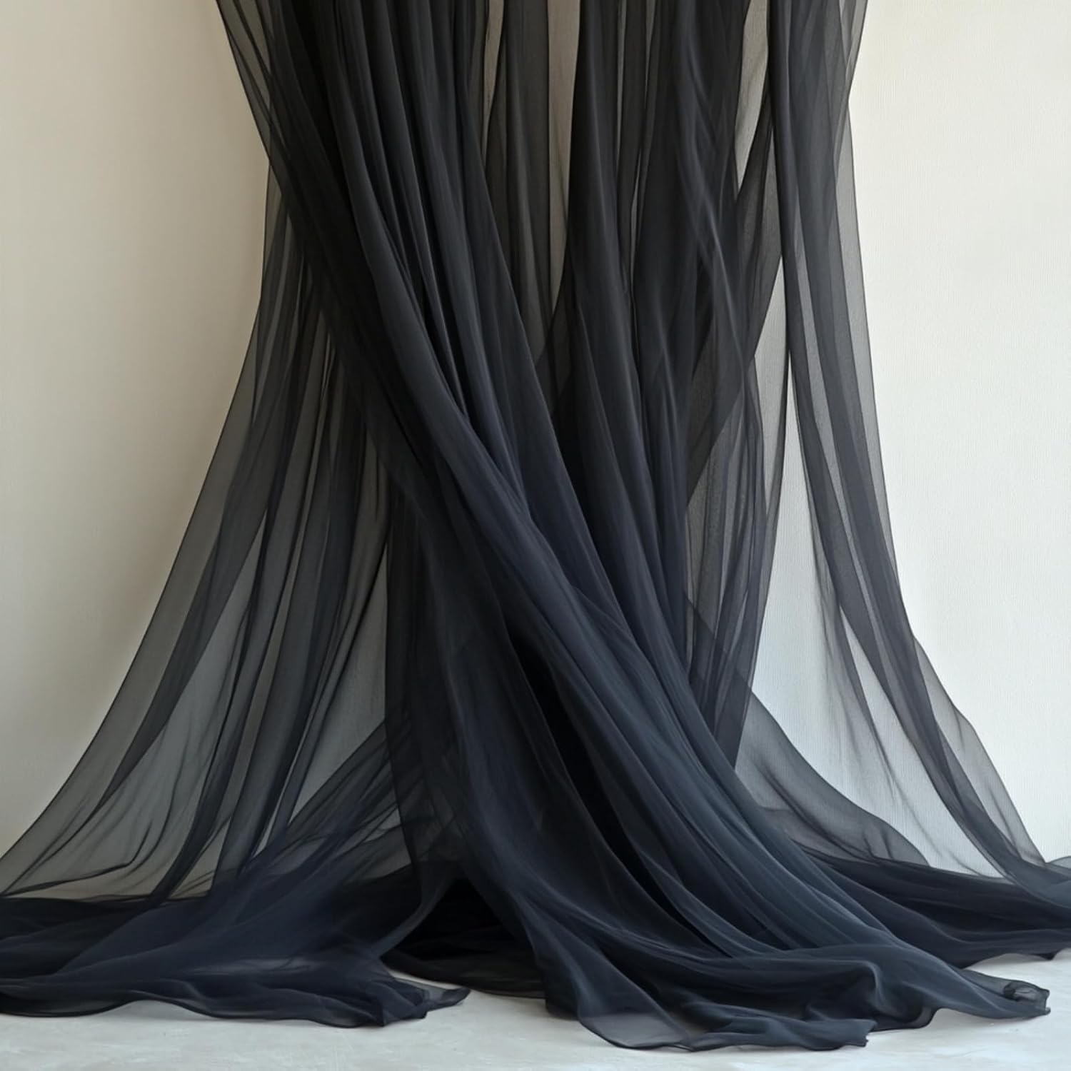 - Elegant Combination of Tulle Backdrop Curtains and Lights - Package Includes: 2 panels black sheer tulle backdrop curtains (5ft x10ft each, total 10x10ft).1 set of a 10x10ft warm white USB-powered tangle-free string lights (10 strands with 300 LEDs). 12 Transparent clips for hassle-free Installation. (Pro Tip: Buy multiple sets for fuller coverage and reduced sheerness!)